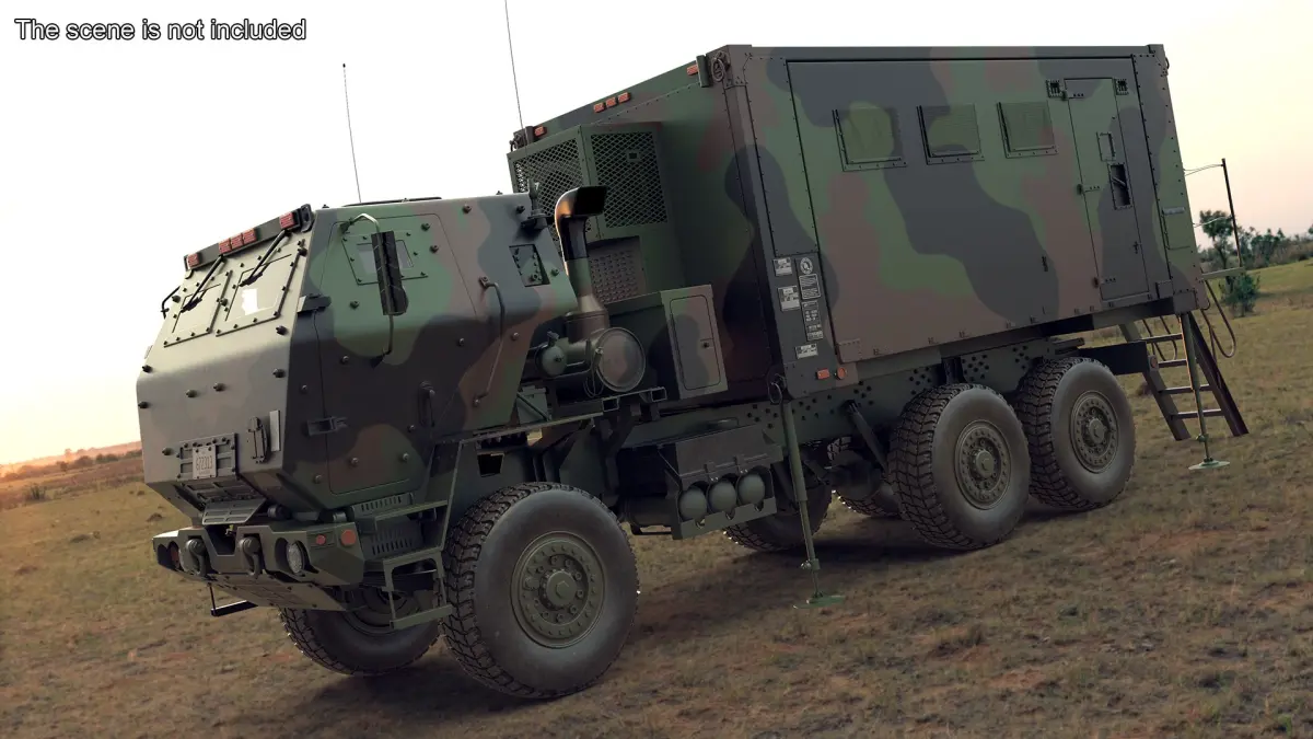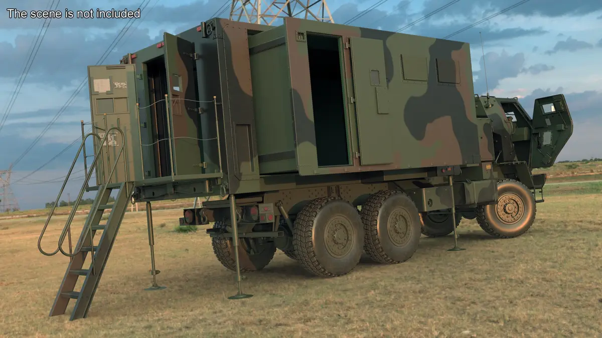 Military Command Vehicle with Stabilizers is a 3d model of a military transport truck, designed for versatile logistical support and transport operations.