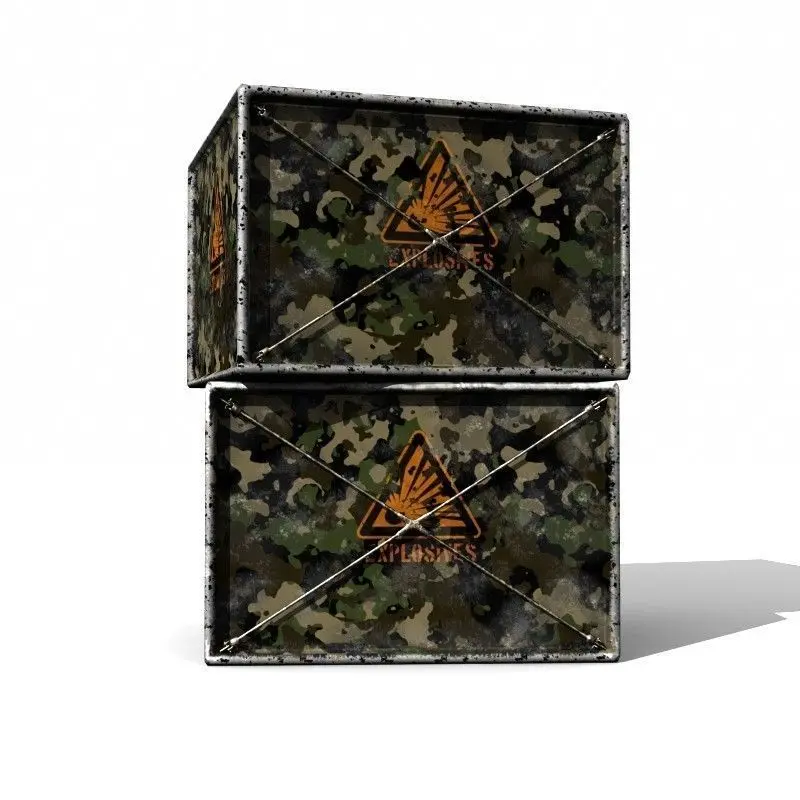 Military crate with explosive sign. Fully UV textured. Specular + diffuse map included. Texture resolution for main crate is 2048x2048.