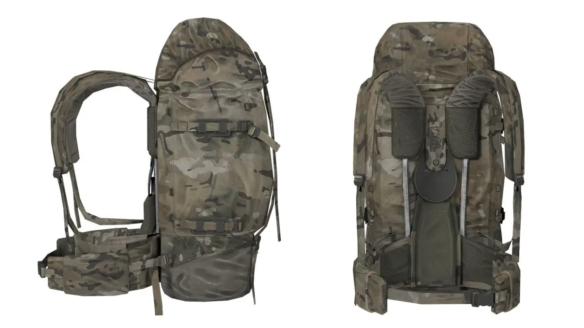 SOLDIER Game Ready Backapack based on a real life F2 Bergen used by different troops around the world specially in France. This particular model is a large backpack with up to 90L capacity. We used real life references and a high poly meshes to provide the best quality and detail possible.