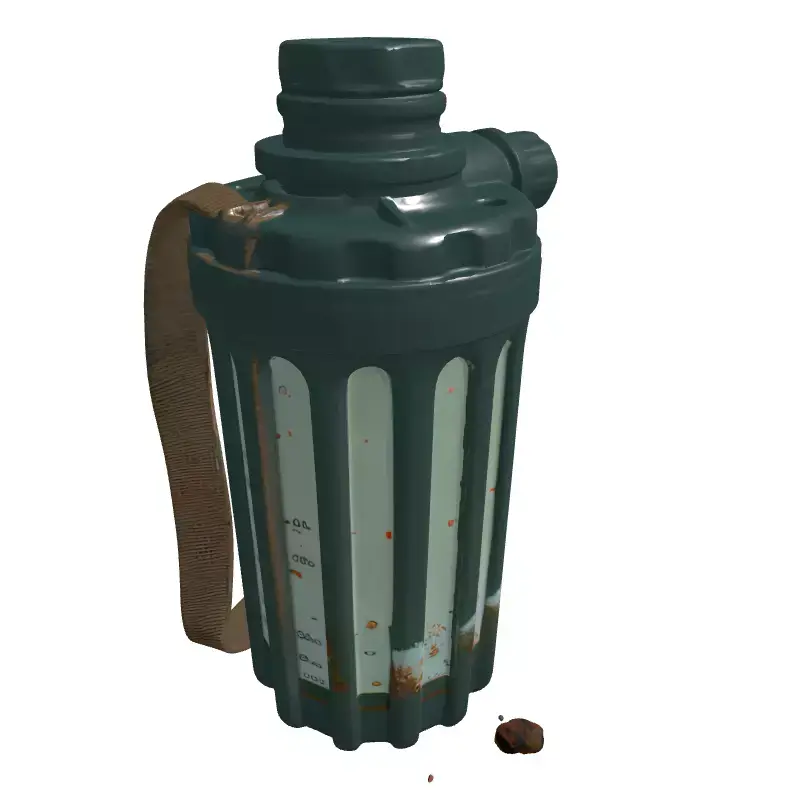 This is a highly detailed, game-ready 3D model of a military-grade field water filter bottle or canteen, perfect for a wide range of digital applications. The model showcases a robust, tactical design with a dark green, rugged exterior and a transparent inner section featuring clear measurement markings. Accentuating its authenticity, subtle details of wear, dirt, and scuff marks have been meticulously integrated, giving it a realistic, used appearance. A practical fabric strap is included, enhancing its portability and realism. This asset is ideally suited for integration into first-person shooter (FPS) games, survival games, adventure titles, and other real-time interactive environments where realism is paramount. Beyond gaming, it serves as an excellent prop for architectural visualizations, detailed environment renders, augmented reality (AR) and virtual reality (VR) experiences, or compelling digital art compositions. The model boasts clean, optimized topology and is fully UV unwrapped, making it ready for immediate use. High-resolution Physically Based Rendering (PBR) textures are included, ensuring photorealistic rendering across various lighting conditions and game engines. Supporting multiple industry-standard formats, this model is available in GLB, OBJ, STL, ABC, DAE, FBX, USD, and PLY. Its efficient polygon count makes it suitable for real-time applications without sacrificing visual fidelity, while the high level of detail also allows for high-quality static renders. This versatile asset provides a reliable and visually striking component for any project requiring realistic military or outdoor utility gear.