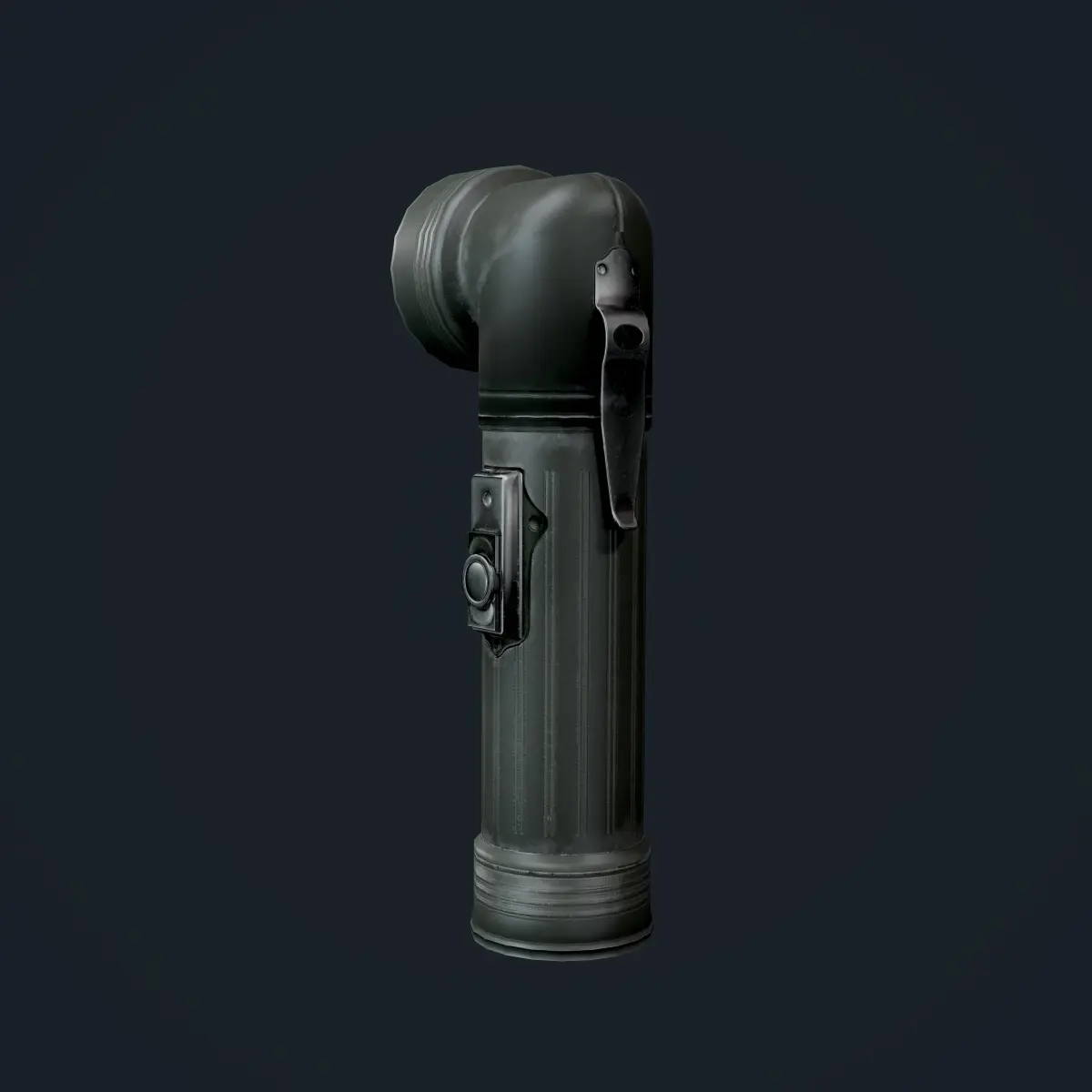 Low poly model of a military flashlight, unwrapped with PBR textures. OBJ files and FBX files. Ready for use in any 3D software or game engine.