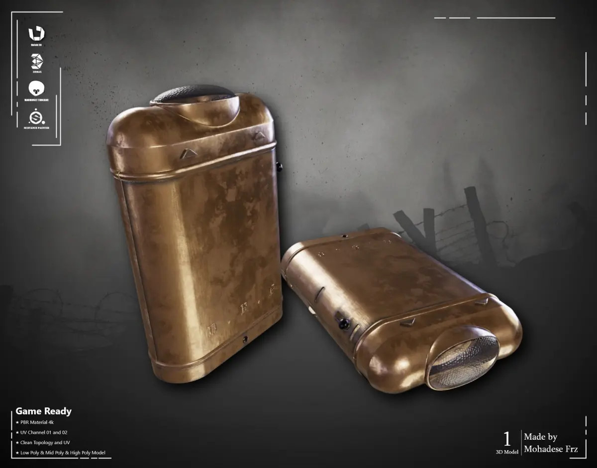 Military Radio : https://www.cgtrader.com/3d-models/military/other/military-radio-vol-02-game-ready