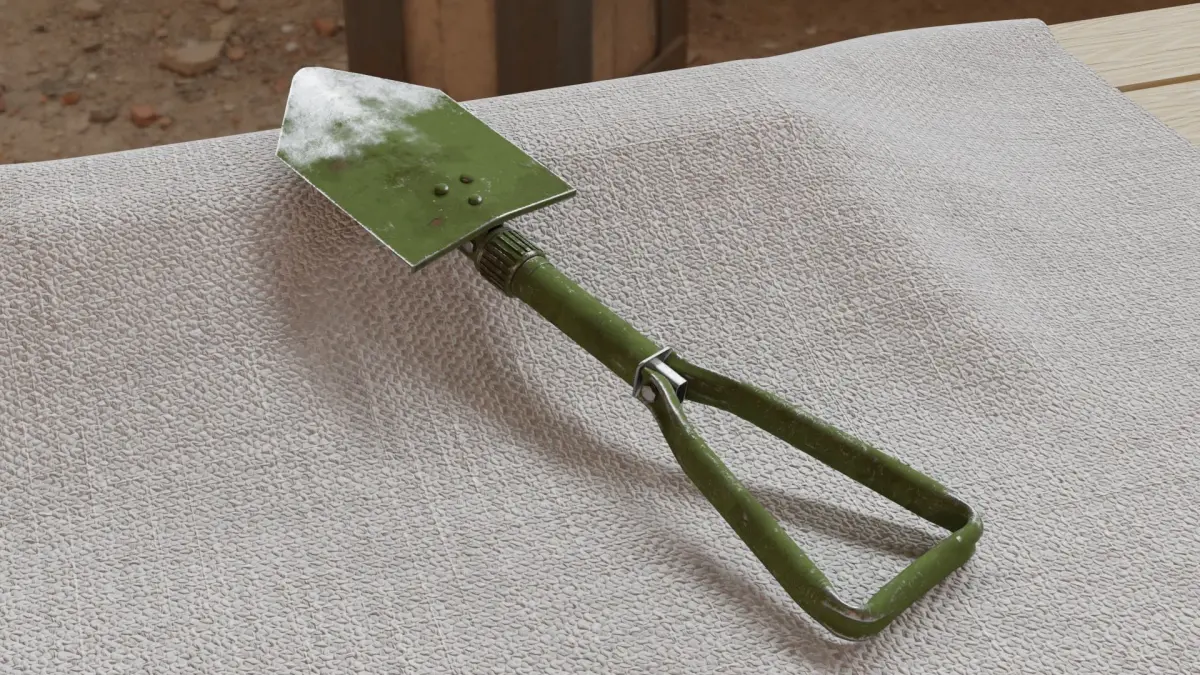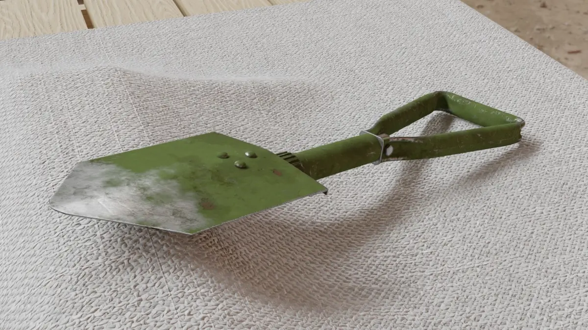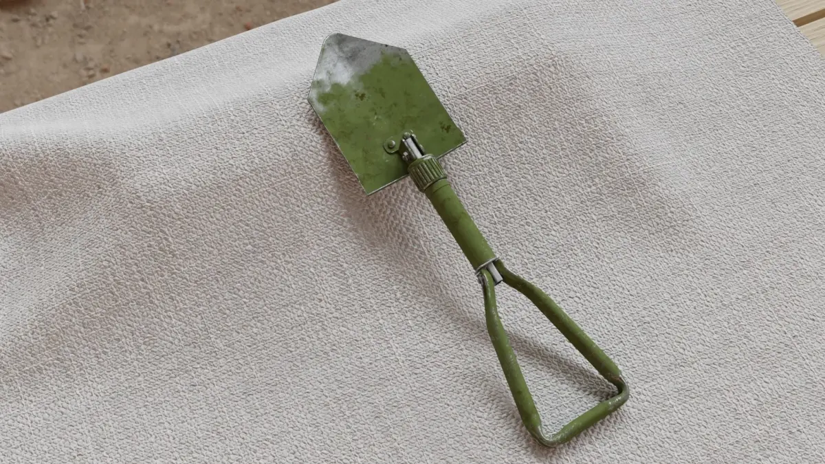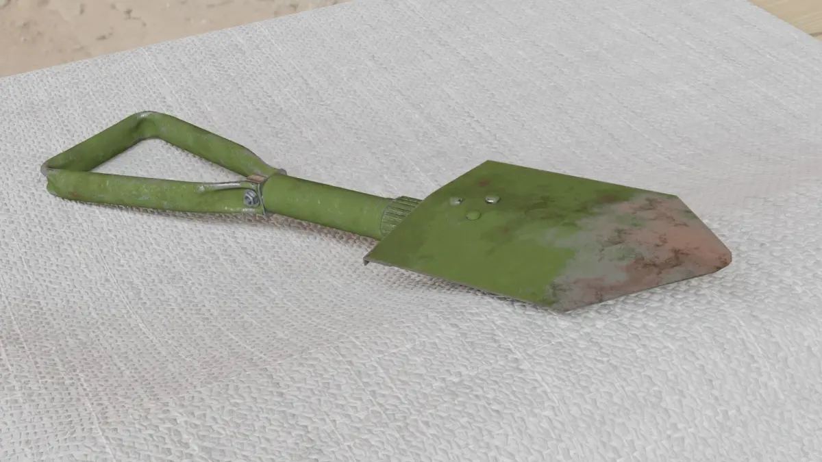 This is a low poly and game ready model of a yugoslavian made folding shovel. It's designation is the M80 Entrenching tool.The model has fully unwrapped UV maps and is split into two materials, the textures included are in 2K and 4K resolution. The model has baked maps from a high poly version.Textures are made to look like the shovel is worn heavily after some years, using multiple reference images from the internet, it's rusted slightly but mostly has spots of rust and dirt.