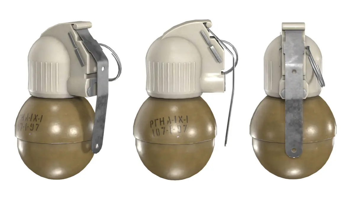 Military Game Ready explosive based on the RGO hand grenade (Ruchnaya Granata Oboronitel'naya, (Hand Grenade Defensive)) is a defensive Soviet fragmentation hand grenade. It consists of a double layered steel pre-fragmented body. It is very similar to the single-layered offensive aluminium-bodied RGN hand grenade. It uses the UDZS dual action fuze, which has both impact and time delay functions. The impact fuze arms after a pyrotechnic delay of 1 to 1.8 seconds. If the impact fuze has not triggered the grenade after 3.2 to 4.2 seconds a second pyrotechnic delay triggers the grenade. The fragments produced by the grenade generate a lethal radius of between 6 metres (20 ft) and 20 metres (66 ft), with the safety radius being 100 metres (330 ft).(Via: https://en.wikipedia.org/wiki/RGO_hand_grenade)