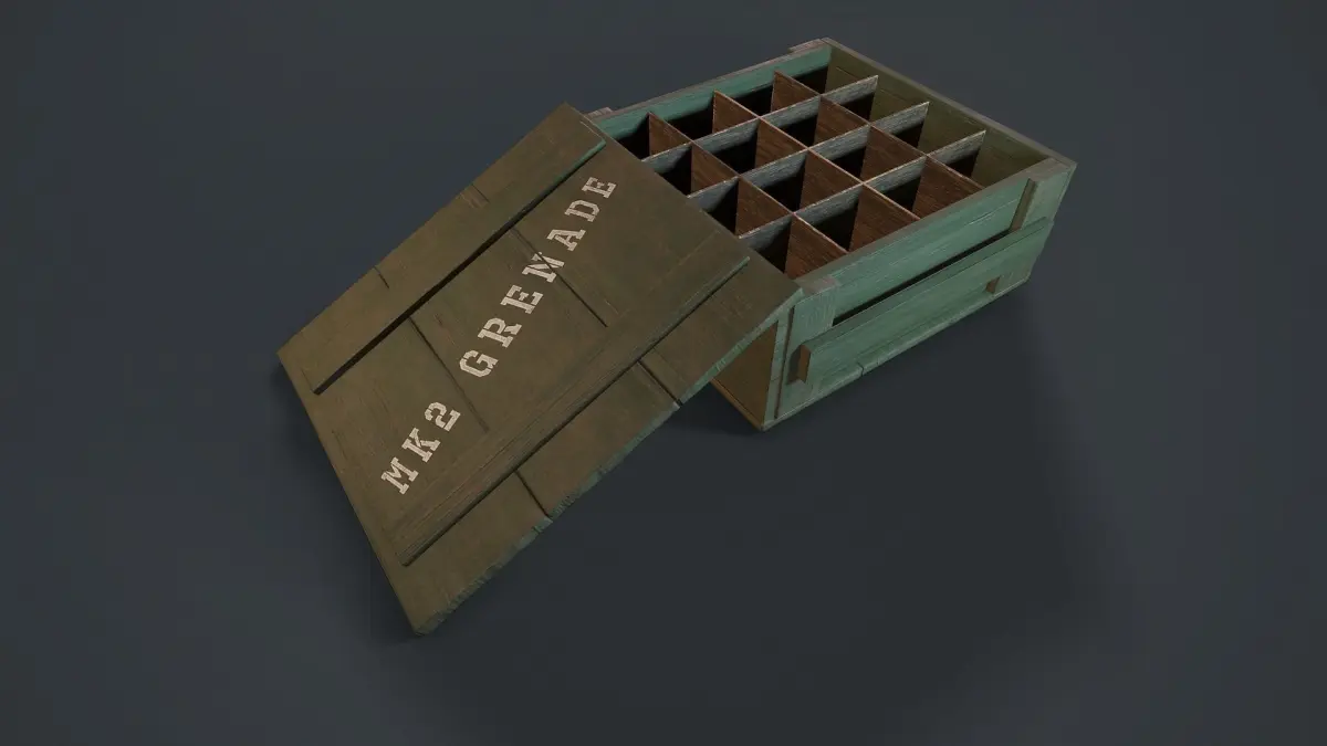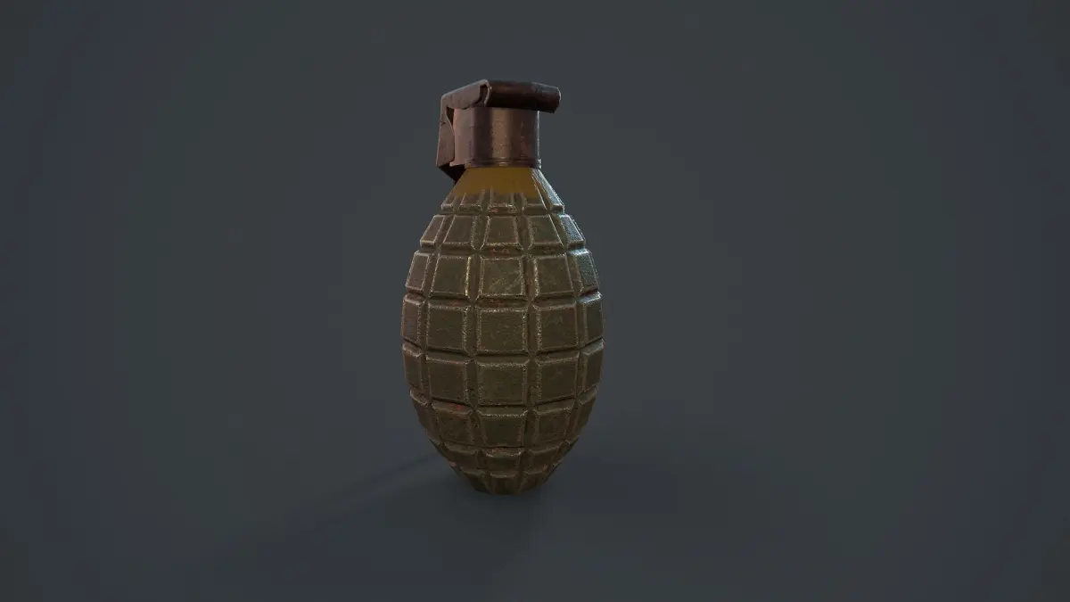 Realistic grenate. Game ready model. grenade faces 1418, verts 1396dynamite box faces 192, verts 244Textures: 2048x2048 Textures are optimized for Unreal Engine 4(Base Color, Normal, OcclusionRoughnessMetallic)