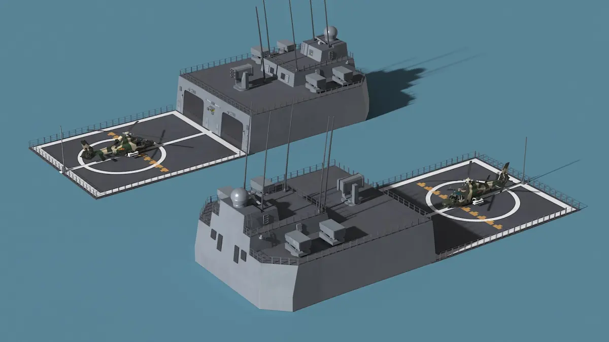 For military training simulations, defense industry visualizations, maritime operation games, aeronautics education, naval base environments, combat scenario animations, government and defense presentations, helicopter technology displays, and tactical planning tools educational, or promotional projects.