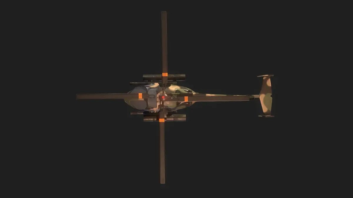 This model of military helicopter was modeled with high quality and with PBR textures. All textures follow the workflow topology for games. It is optimized for use in real time. All textures are available in 2048x2048, in PNG format of 8.• PBR (BaseColor, Rougness, Metallic, Normal, AO, Emissive,).• Unreal Engine 4 ((Albedo) BaseColor, (ARM) OcclusionRoughnessMetallic, Normal, Emissive).• Unity 5 (AlbedoTransparency, AO, MetallicSmoothness, Normal, Emissive).