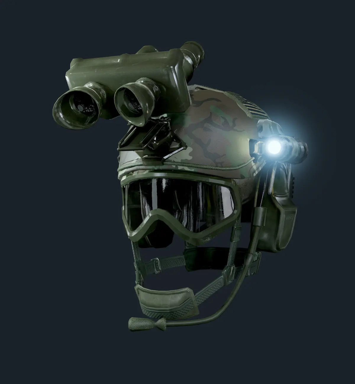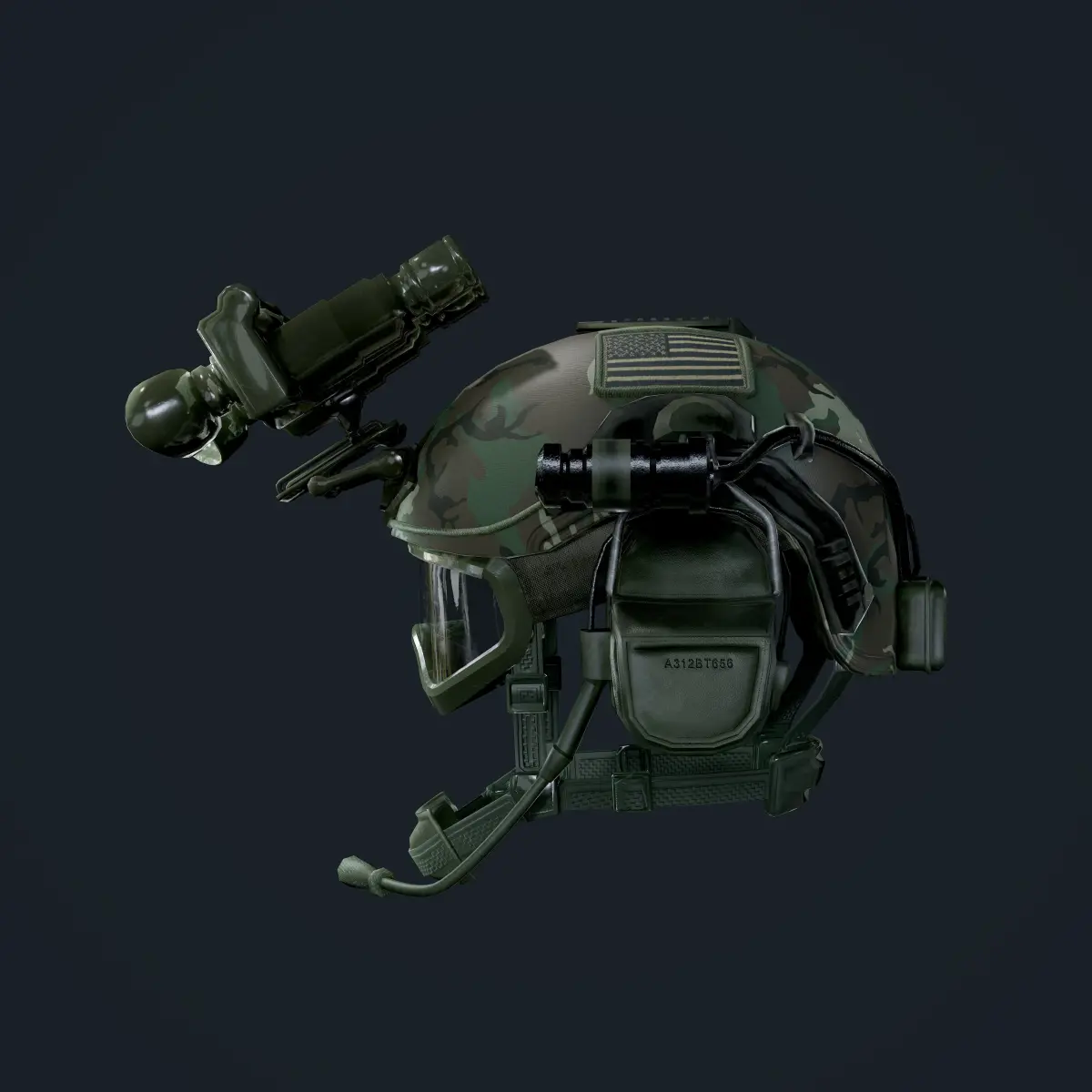 Low poly of a military helmet, unwrapped with PBR textures. OBJ files and FBX files. Two helmets included- With and without nightvision. Ready for use in any 3D software or game engine.