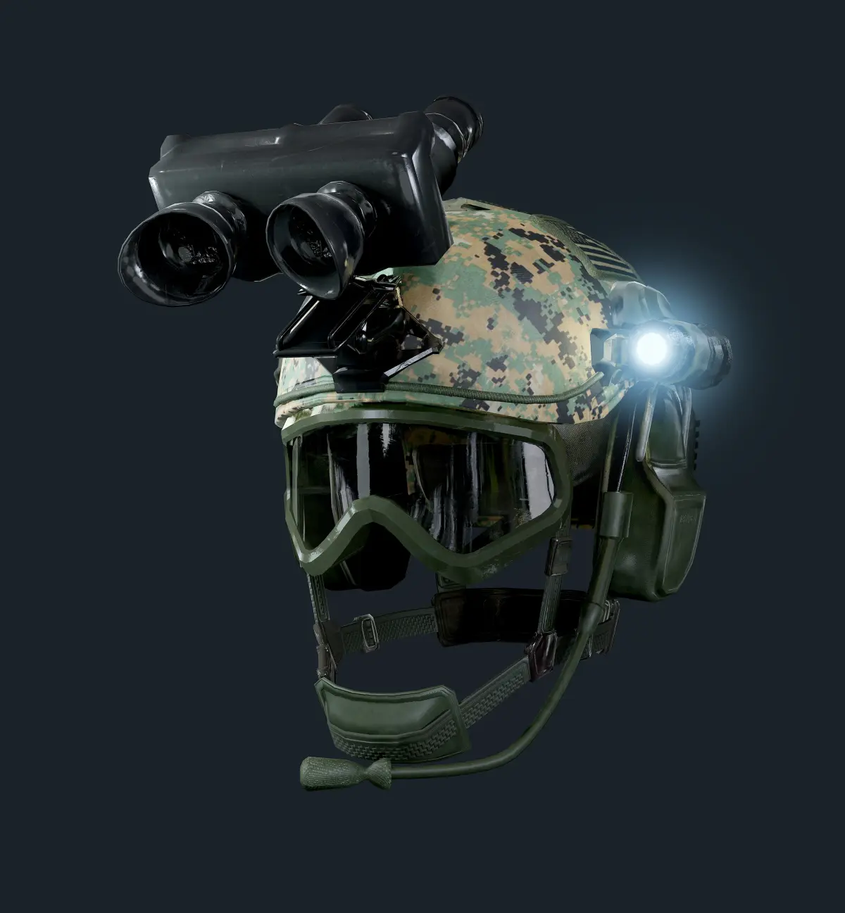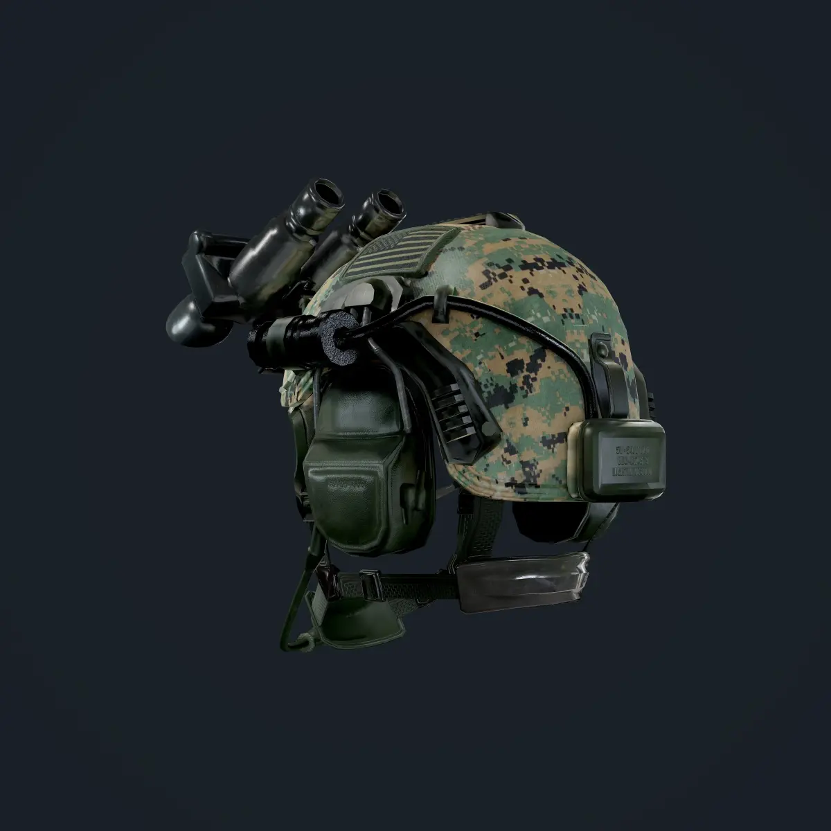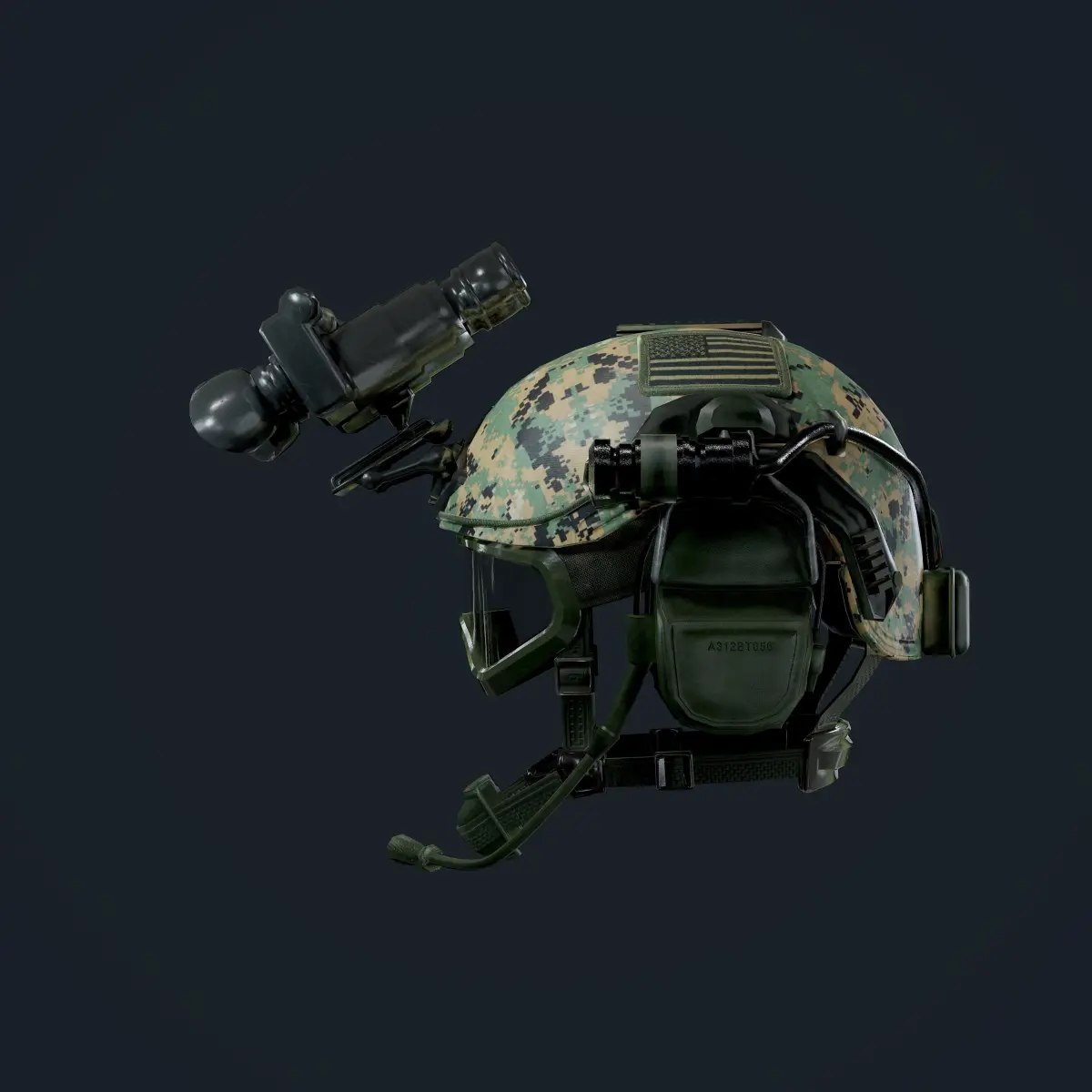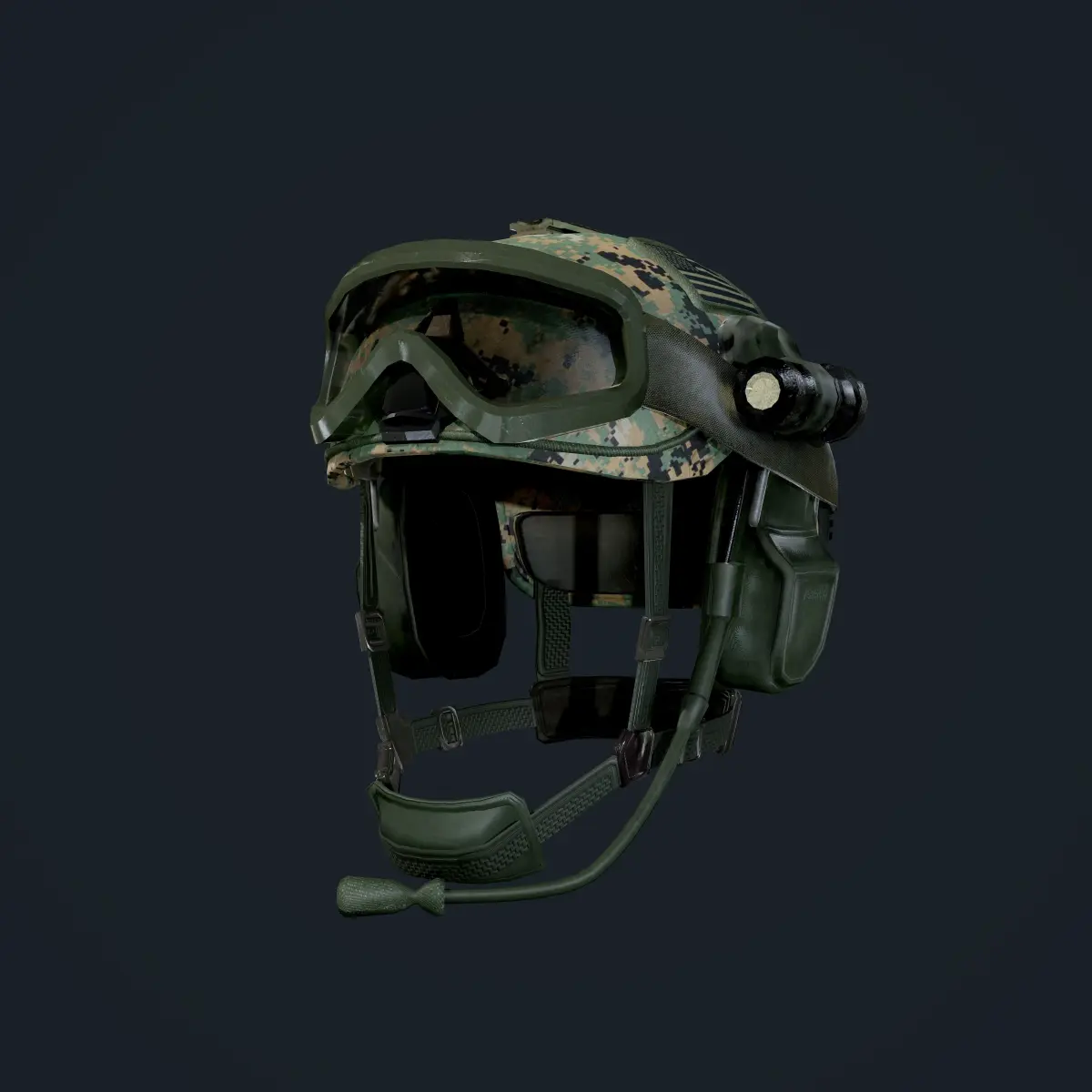 Low poly model of a military helmet ready to be imported into any 3D software or game engine. Unwrapped with PBR textures. This model comes with nightvison and flashlight attachment.