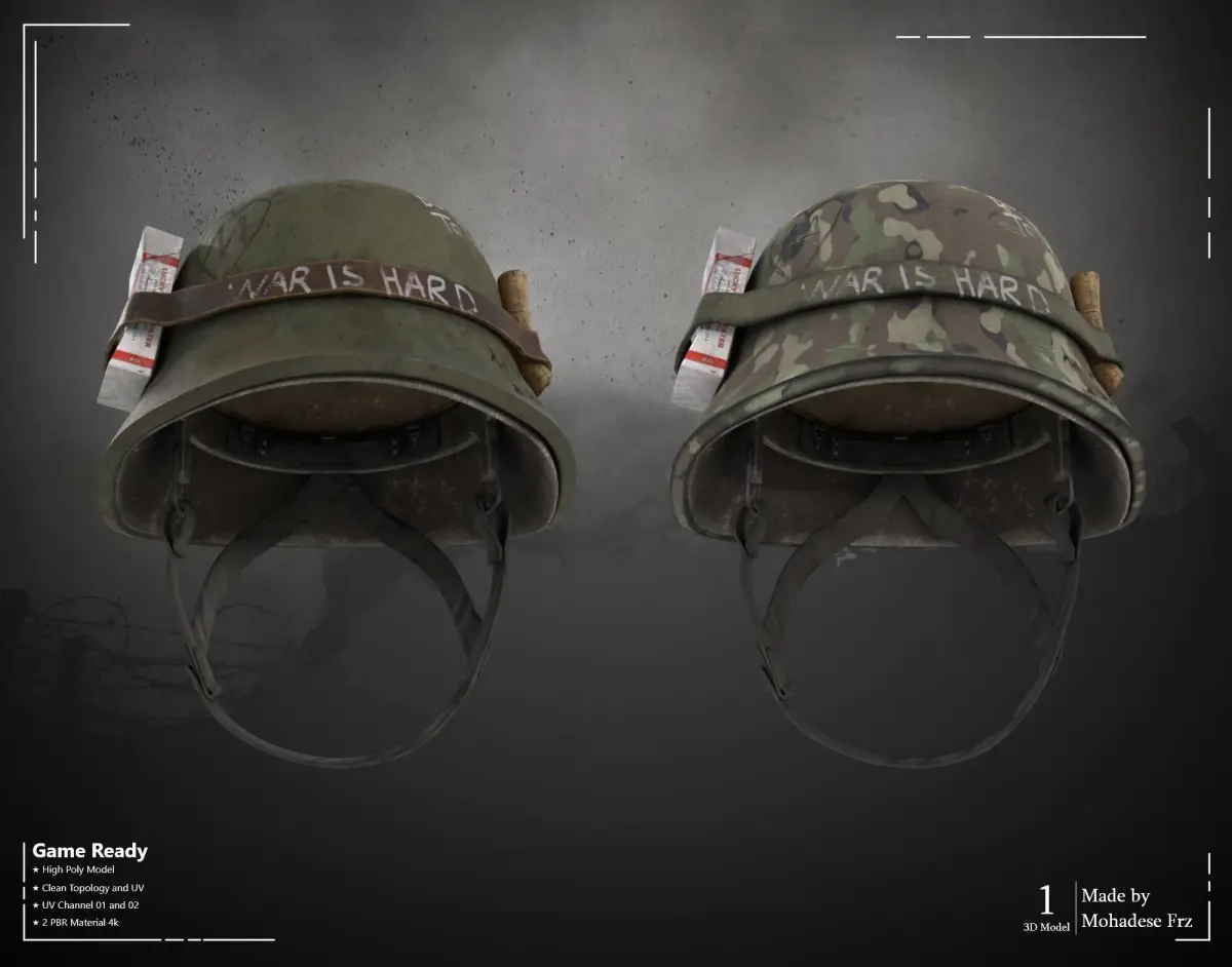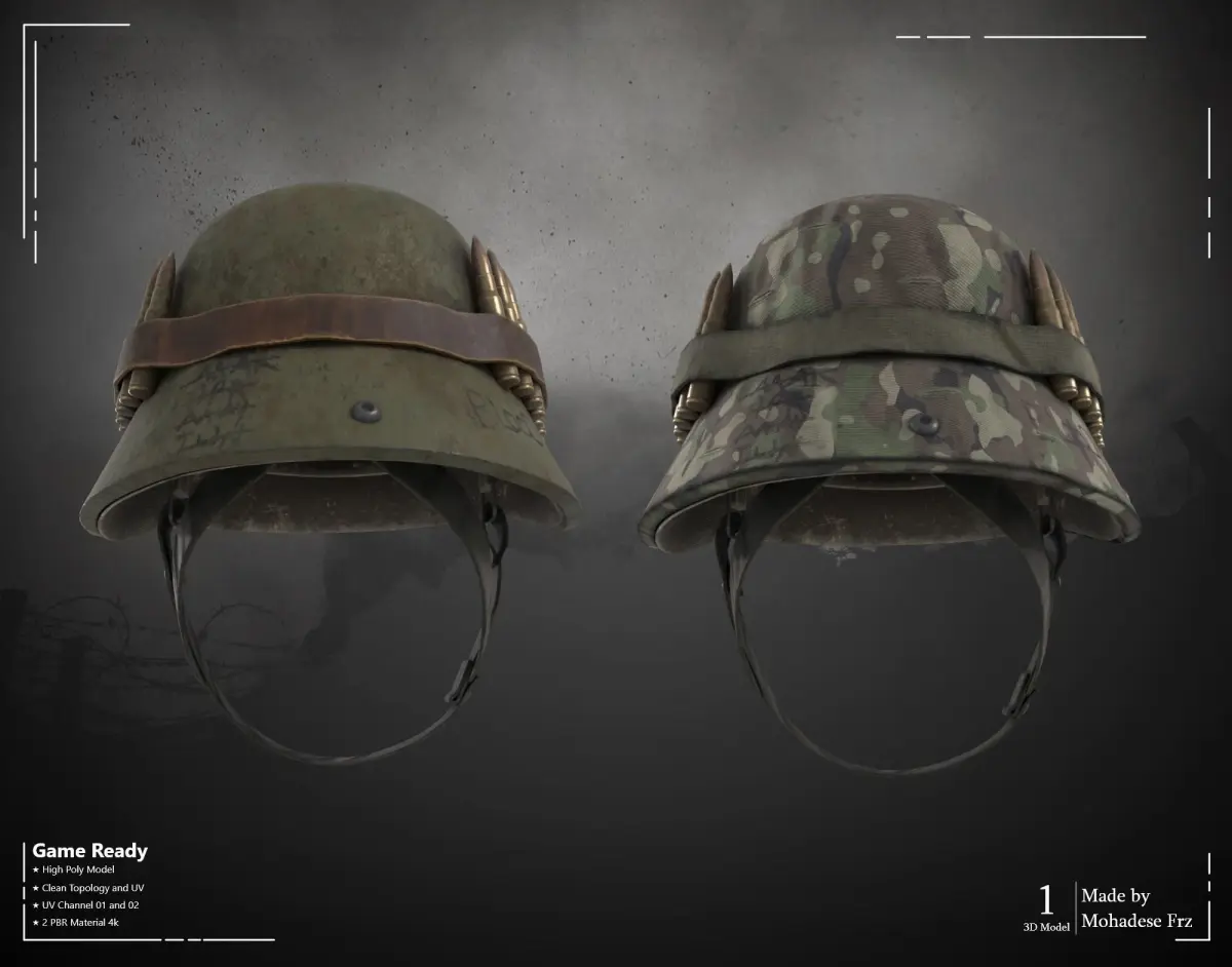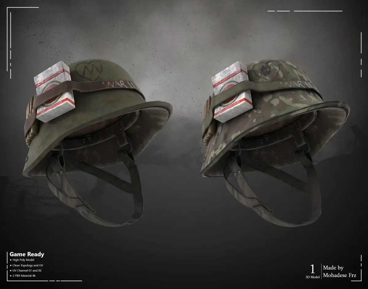 This package contains a 3D model of a military helmet of the World War, which has two types of materials. You can use the model and both materials in any 3D software.