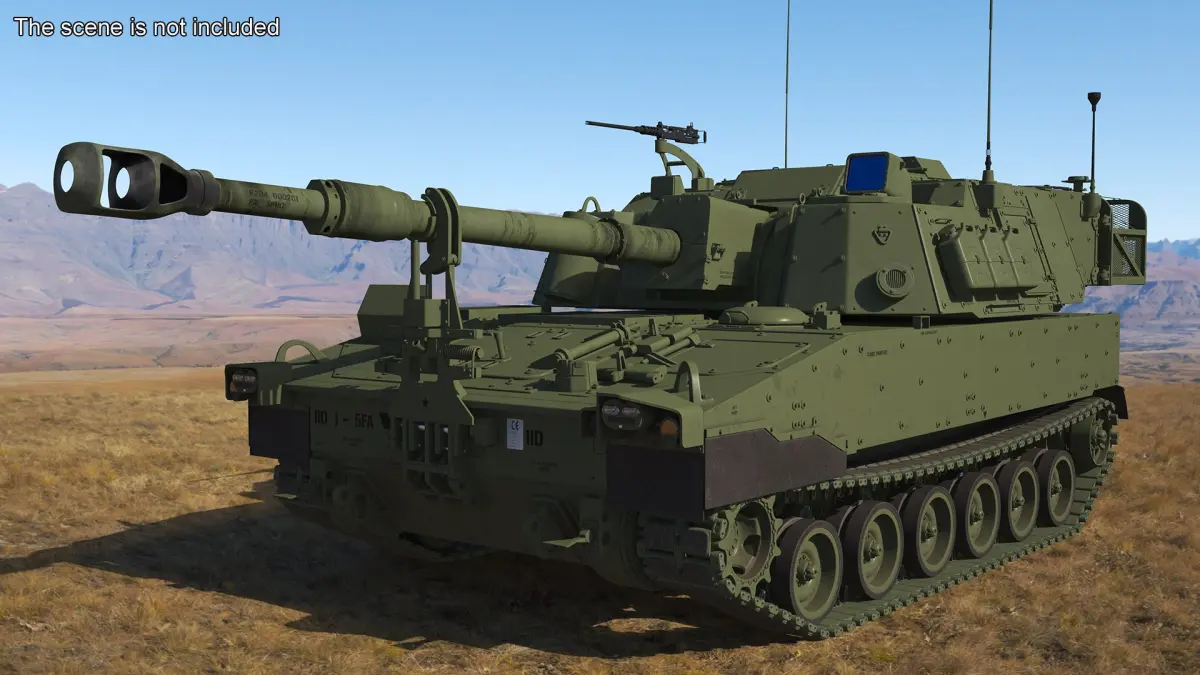 Military Howitzer M109A7 Paladin is a 3d model of an upgraded version of the M109 self-propelled howitzer, specifically the M109A6 Paladin variant, used by the United States Army.