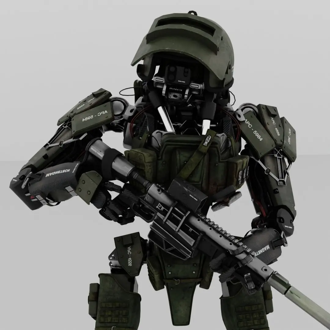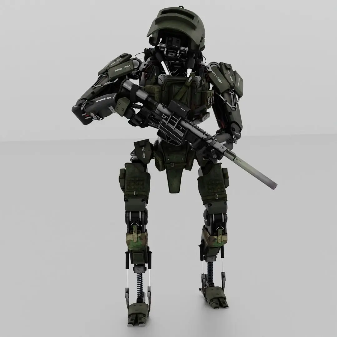 military humanoid robot Low-poly 3D model