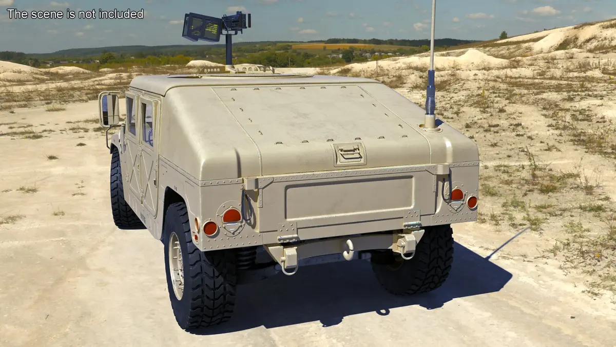 Military Humvee with Mounted Machine Gun Rigged for Cinema 4D is a 3d model of a robust, all-terrain military vehicle equipped with a heavy machine gun, fully rigged for animation and dynamic simulations.