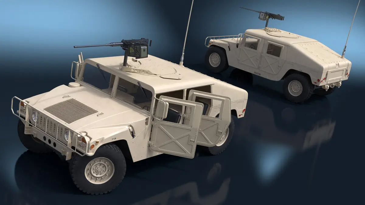 Built for rough terrains and tactical military operations, this Humvee model features an armored body, high ground clearance, and a mounted machine gun for combat scenarios. The rigged version allows for animated elements like steering, suspension movement, weapon operation, and door functionality, making it suitable for realistic simulations. Its detailed design includes weapon mounts, reinforced armor, and tactical equipment.