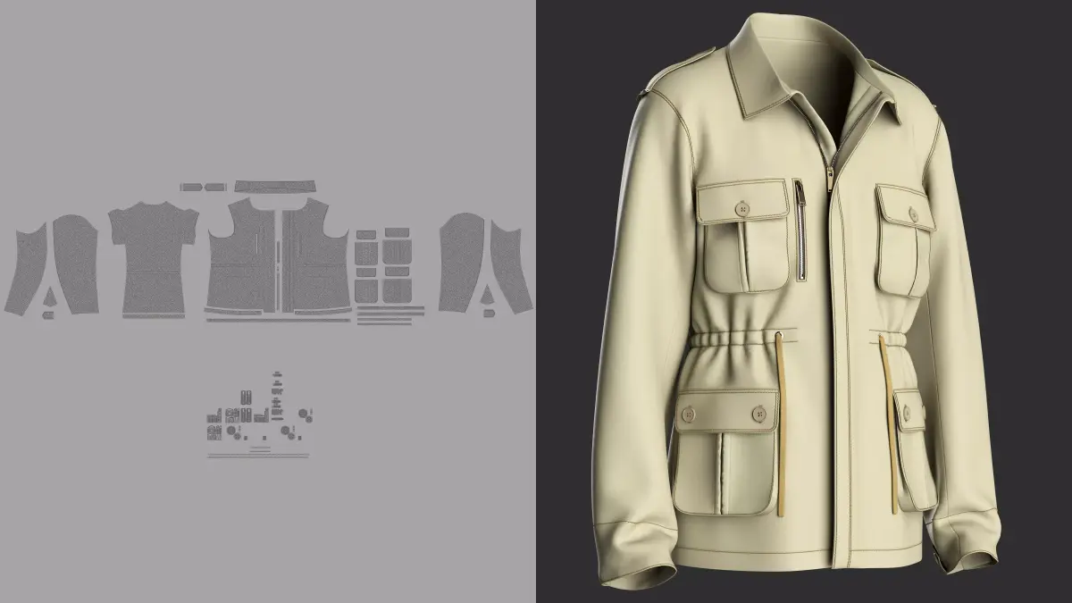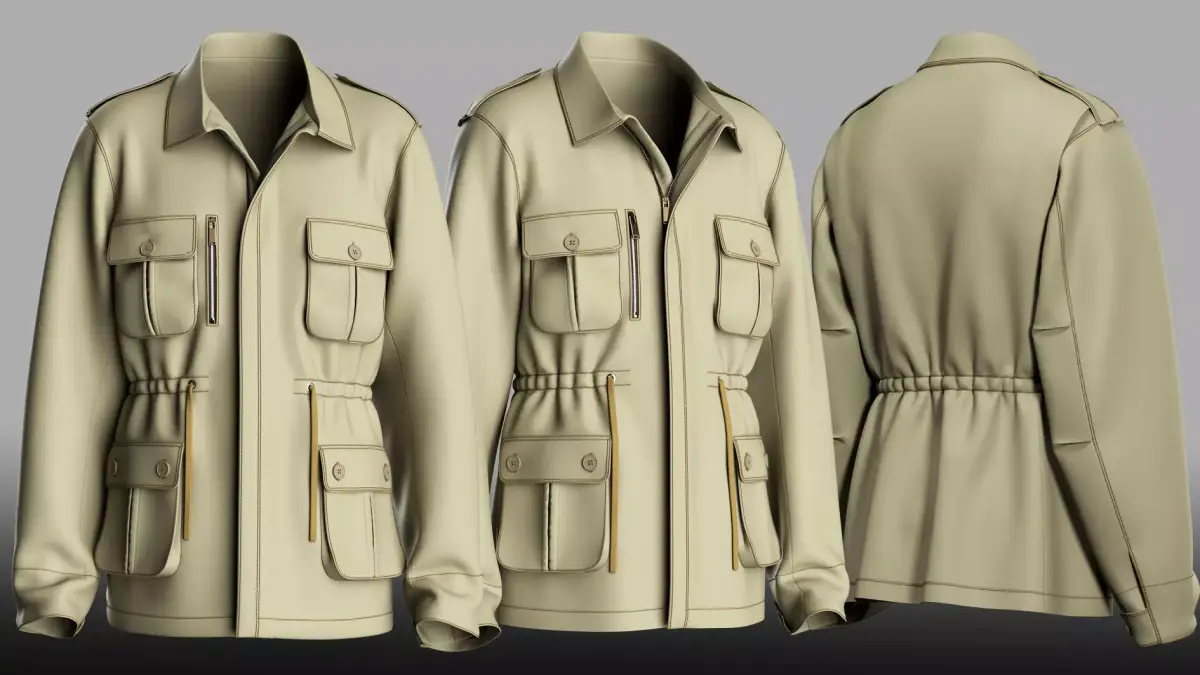 Men’s Military Jacket – Base 3D Clothing ModelMarvelous Designer / Clo3D Project + OBJ Format