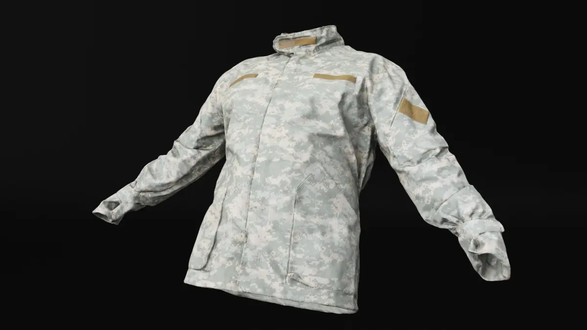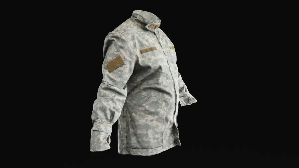 This is a true human size and detailed model of a military jacket of Army Combat Uniform. The jacket is suitable for average model of size S, M, L. May be slightly adjusted for better fitting.