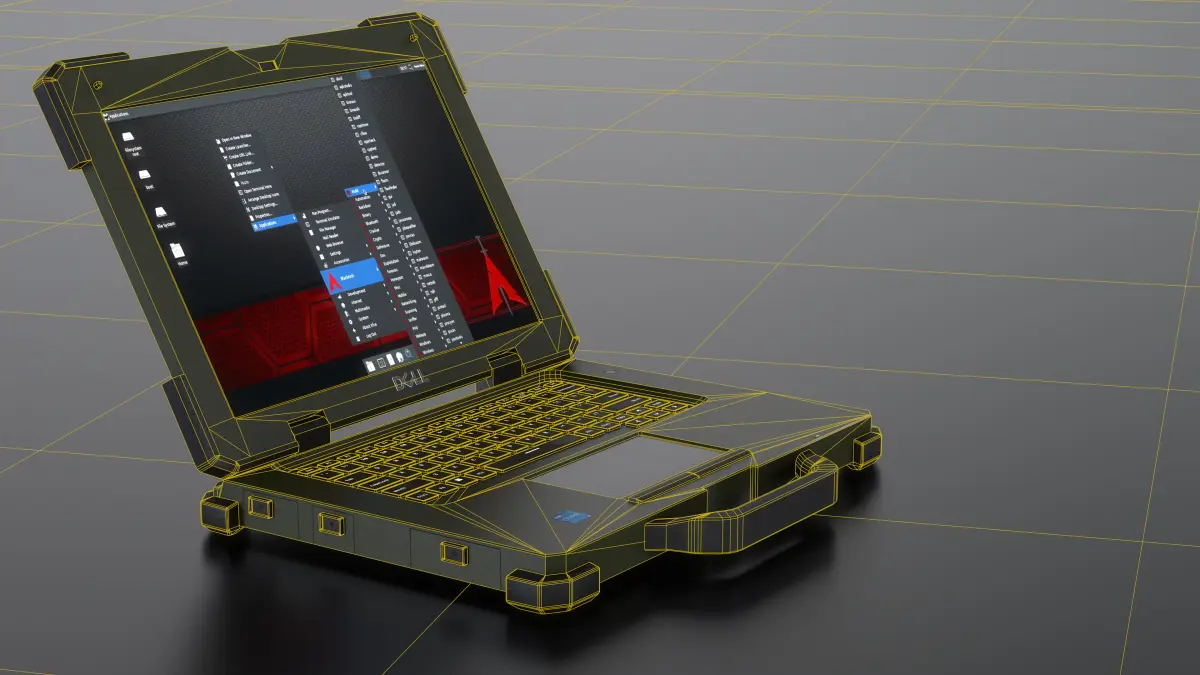 Hero Prop LaptopTextures: 2x 4kPolycount: 3175Softwares: Modelled in Blender, UV Unwrapped in MAYAFeatures: Extra Durable, Capable of handling 6m falls, IP64 Water resisting.Usecase: On-Site server penetration testing for military sites.