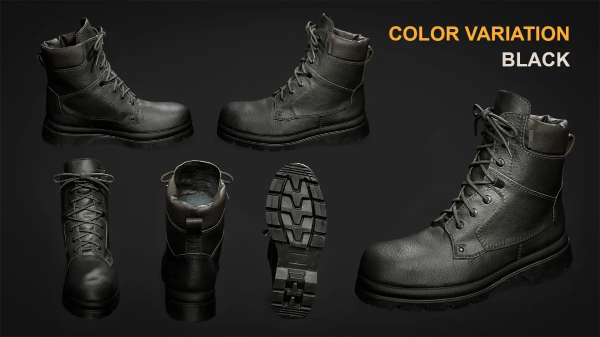 This high-quality 3D model of a military leather boot is based on a real-world scan, created using 3d scaner and enhanced with detailed sculpting. It includes multiple levels of geometry, texture variations, and formats for flexible use in real-time applications, cinematics, or asset libraries.