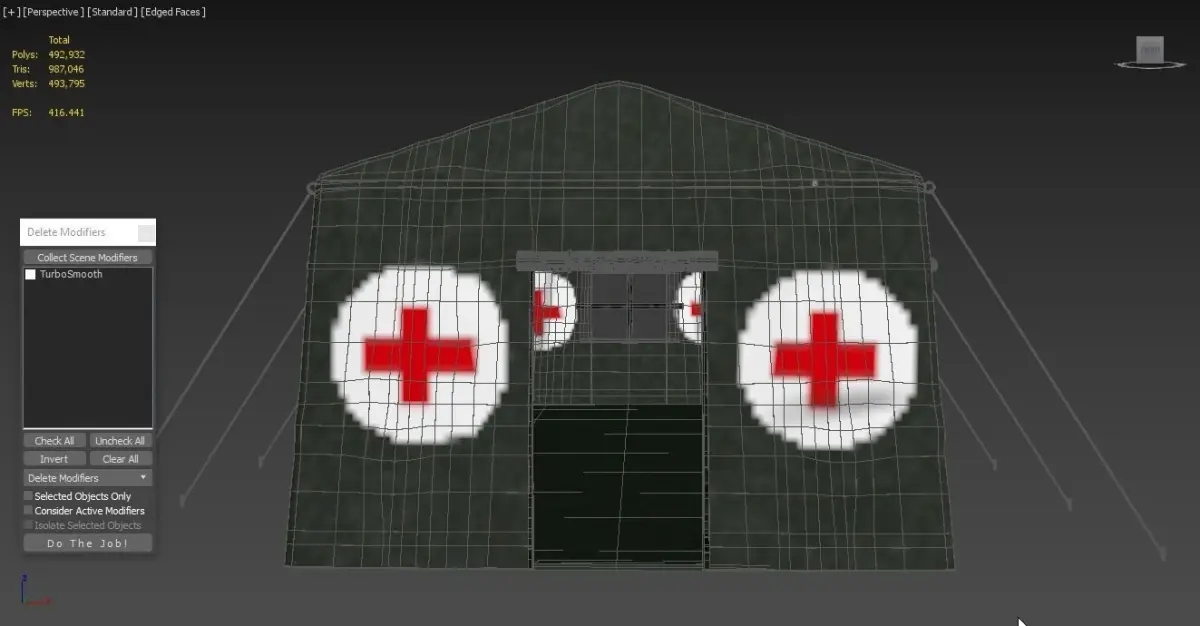 Military Medical Tent is a high quality, photo realistic 3d model that will enhance detail and realism to any of your rendering projects. The model has a fully textured, detailed design that allows for close-up renders, and was modeled in 3ds Max 2018 also has 3ds Max 2015 version and rendered with V-Ray. Renders have no post-processing.