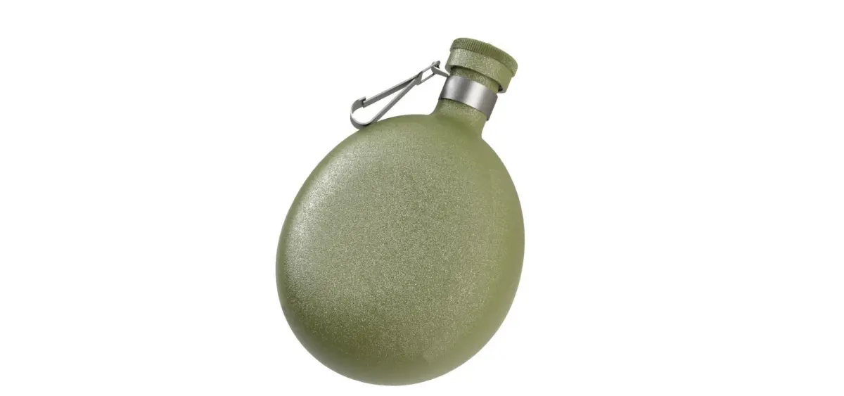 This 3D model represents a military metal water bottle that is designed to be durable and long-lasting. It is made of high-quality metal that is resistant to corrosion and damage. The bottle has a flat shape with a capacity of about 1 liter.