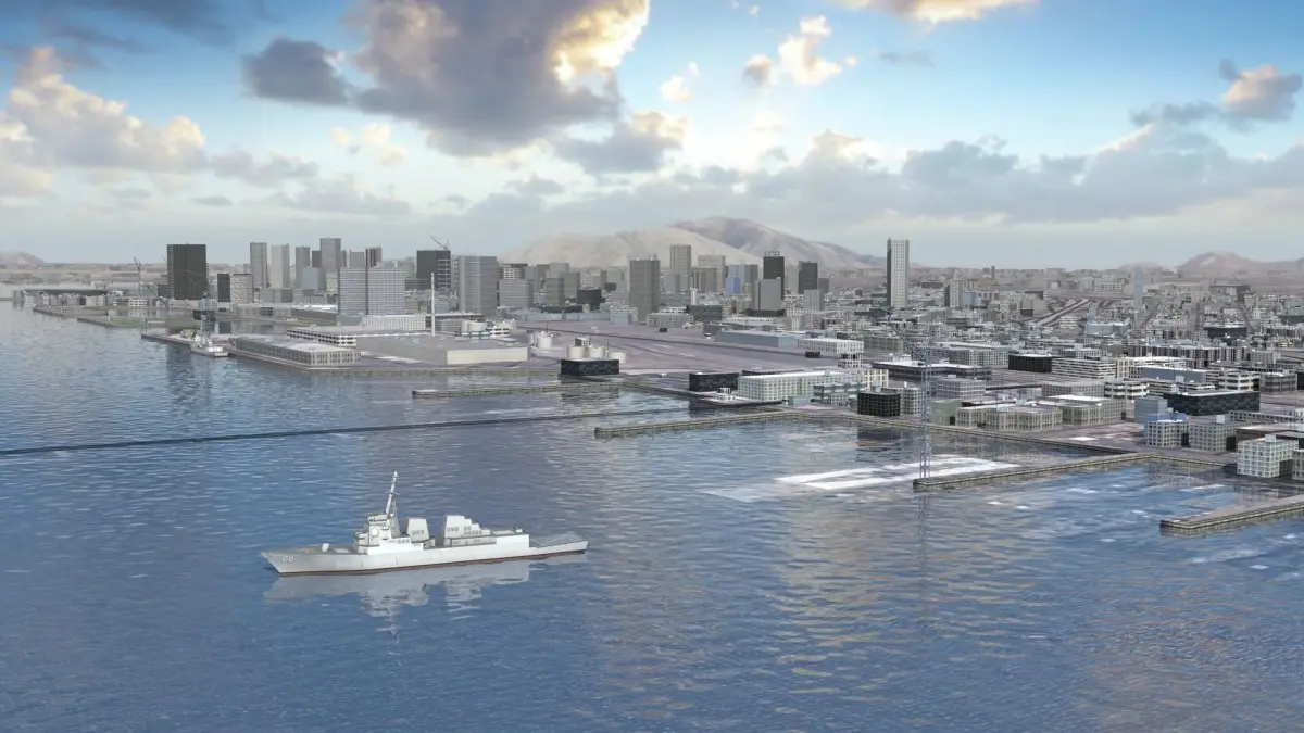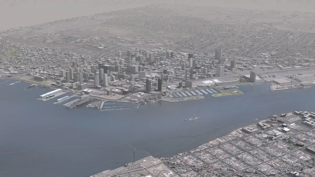 Military Naval Base 3D model. Accurate geo-referenced model, ideal for arch-viz, city planning or games/simulations. Based on San Diego, California, USA. Set covers 13.5 km x 10.5 km, thousands of unique buildings, major and minor roads, water surface, building rooftops, cranes, clutter and more. Ships and aircraft are shown for illustration only and are not included in this asset.