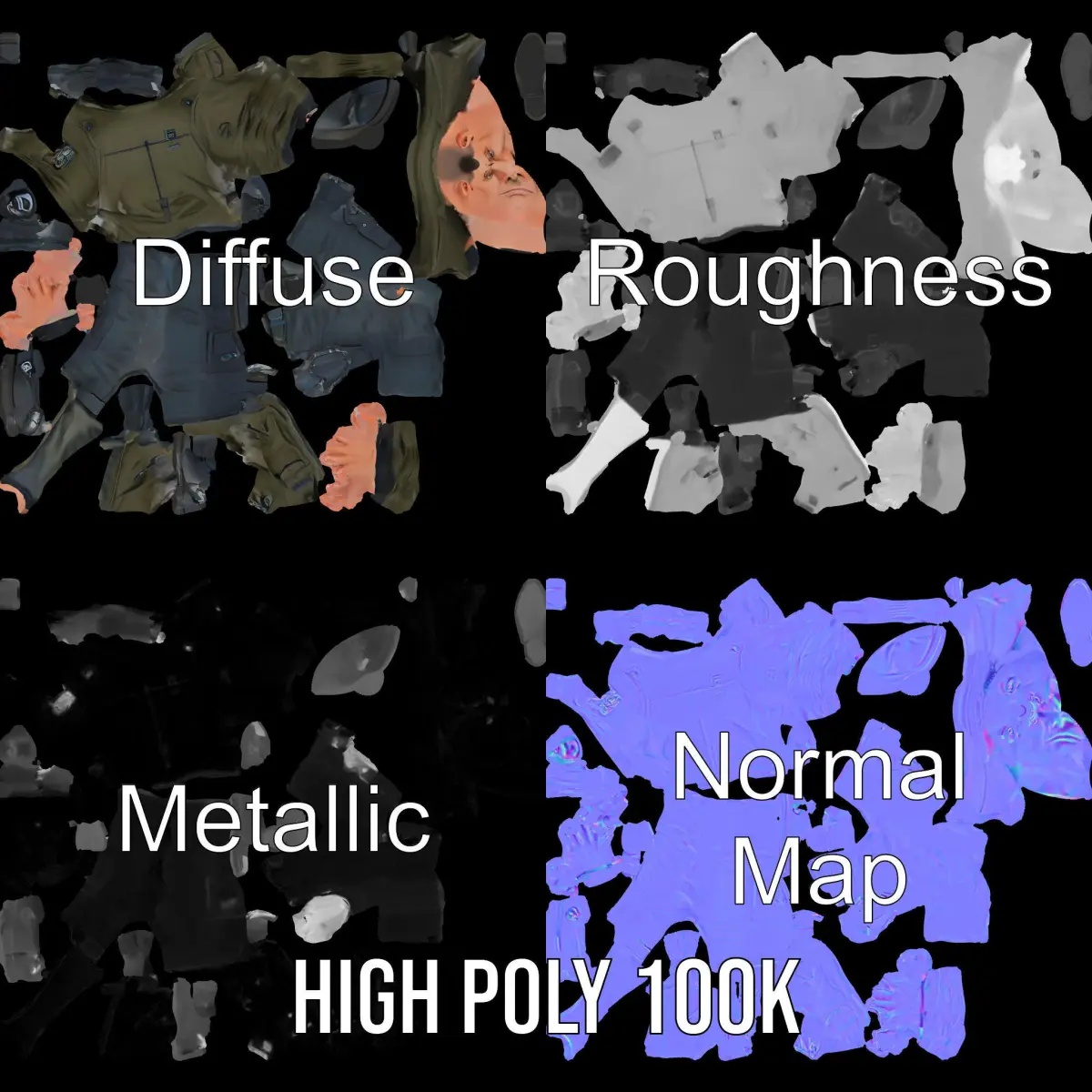 This character model comes in 3 levels of detail: low-poly for mobile games, mid-poly for standard games, and high-poly for cinematics. The model is fully rigged and ready for animation. It includes PBR textures (4096x4096), including diffuse, normal maps, and metallic/roughness maps. The character is provided in T-pose and can be easily imported into any modern game engine or 3D software. Perfect for games, animations, or virtual reality applications. Please like and comment if you find this model useful!