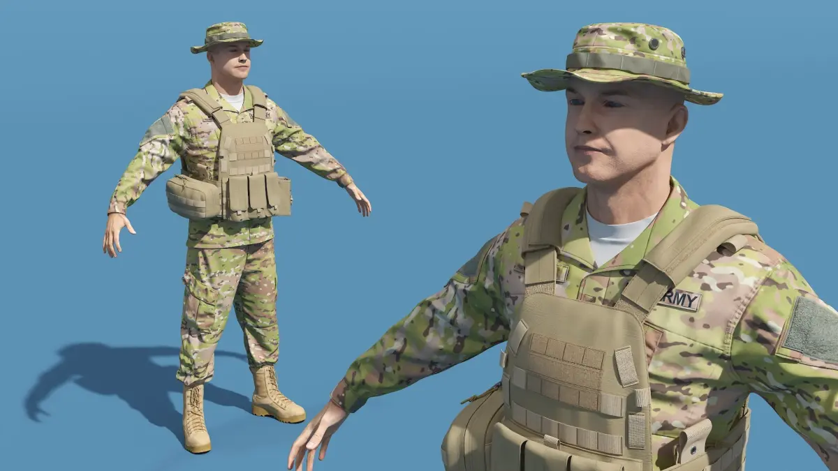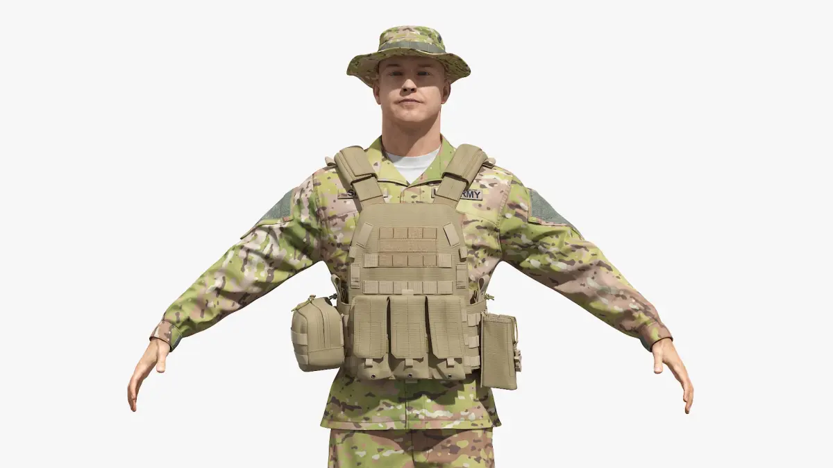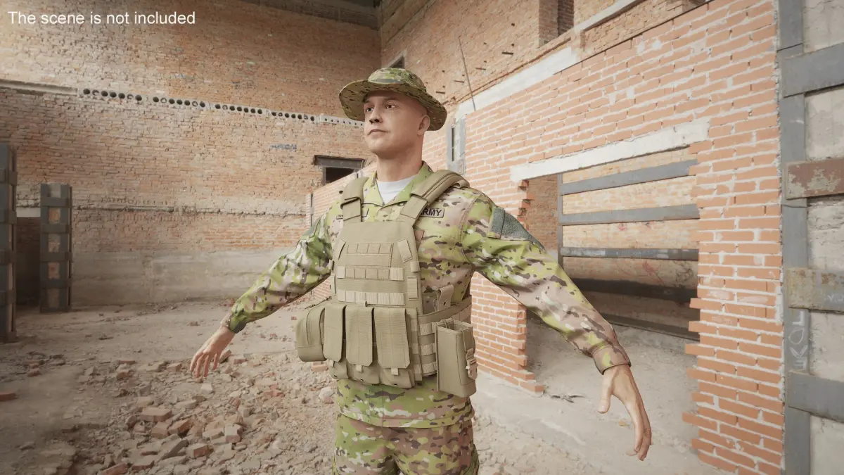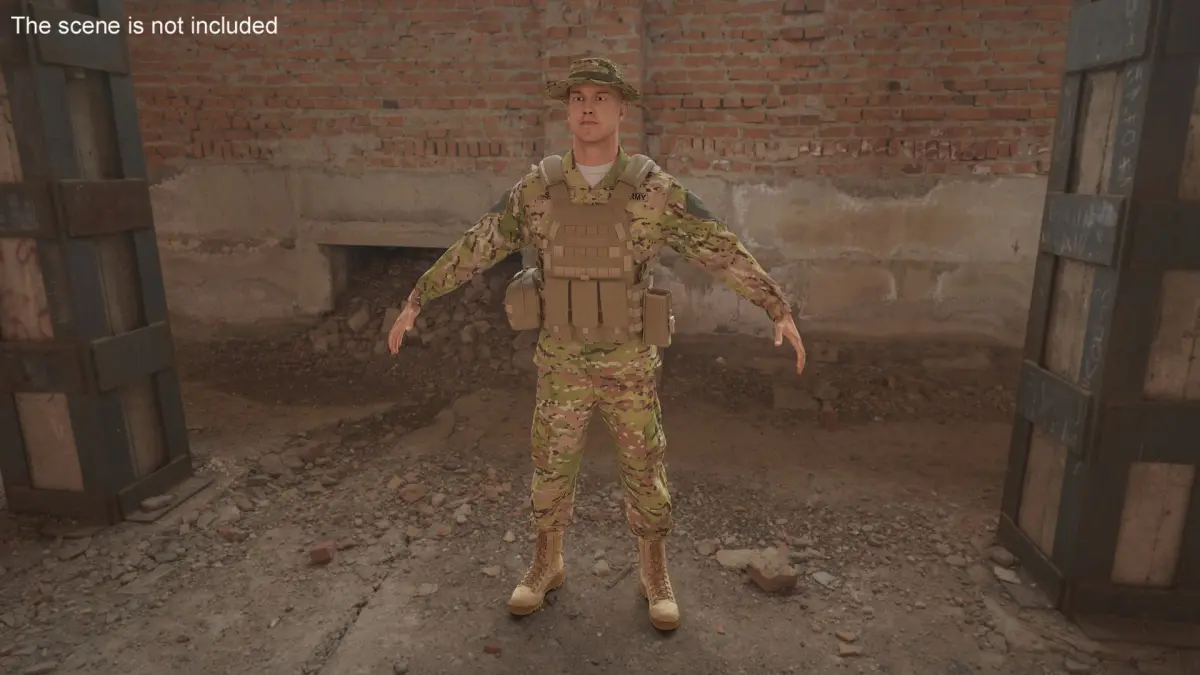 Military Operator in Plate Carrier is a three-dimensional model of a military uniform complete with tactical gear, designed for realistic and immersive simulation.