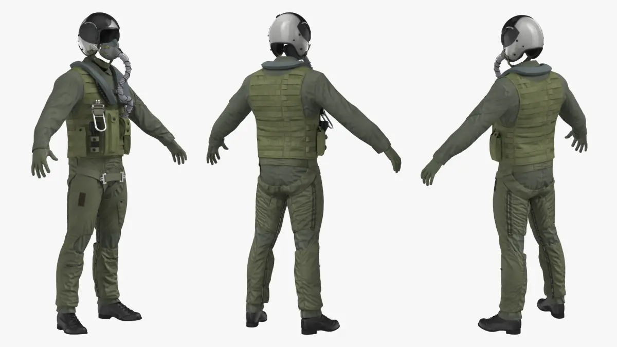 Military Pilot Flight Suit with Helmet Green is a 3d model of a tactical aviator uniform, commonly known as a flight suit, designed for military and aviation professionals.