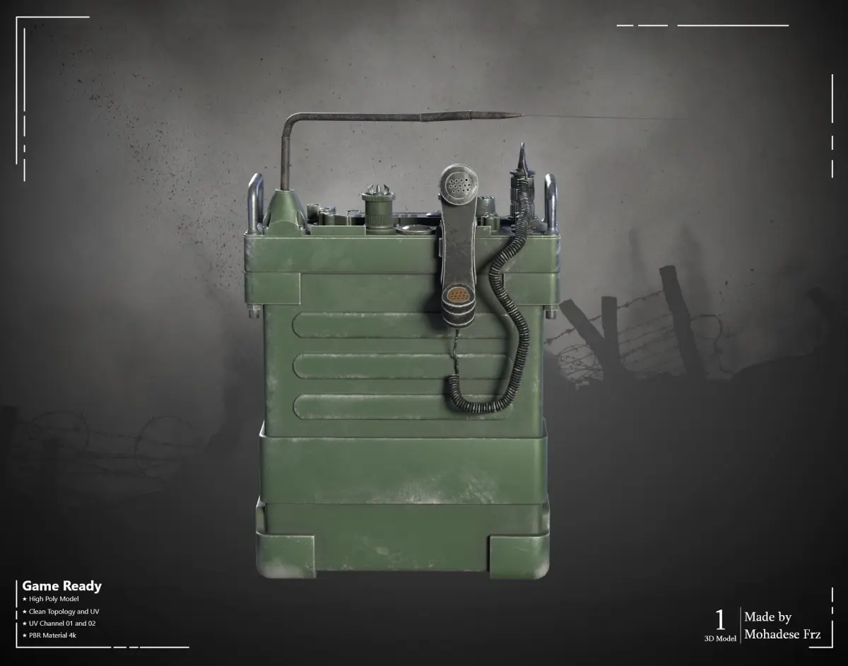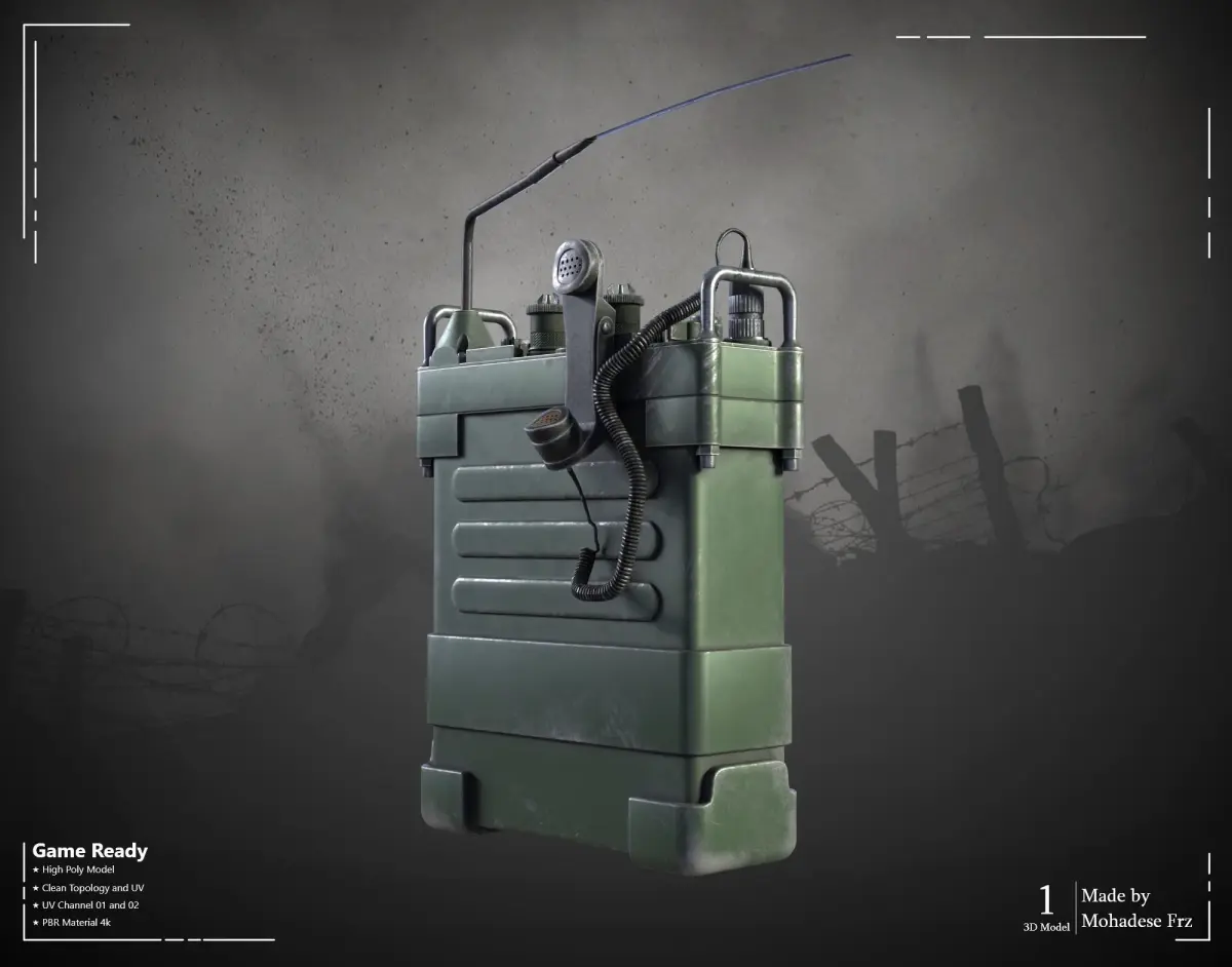 This radio is modeled in 3dsmax software and materialized in Substance Painter software and rendered in Marmoset Toolbag software.