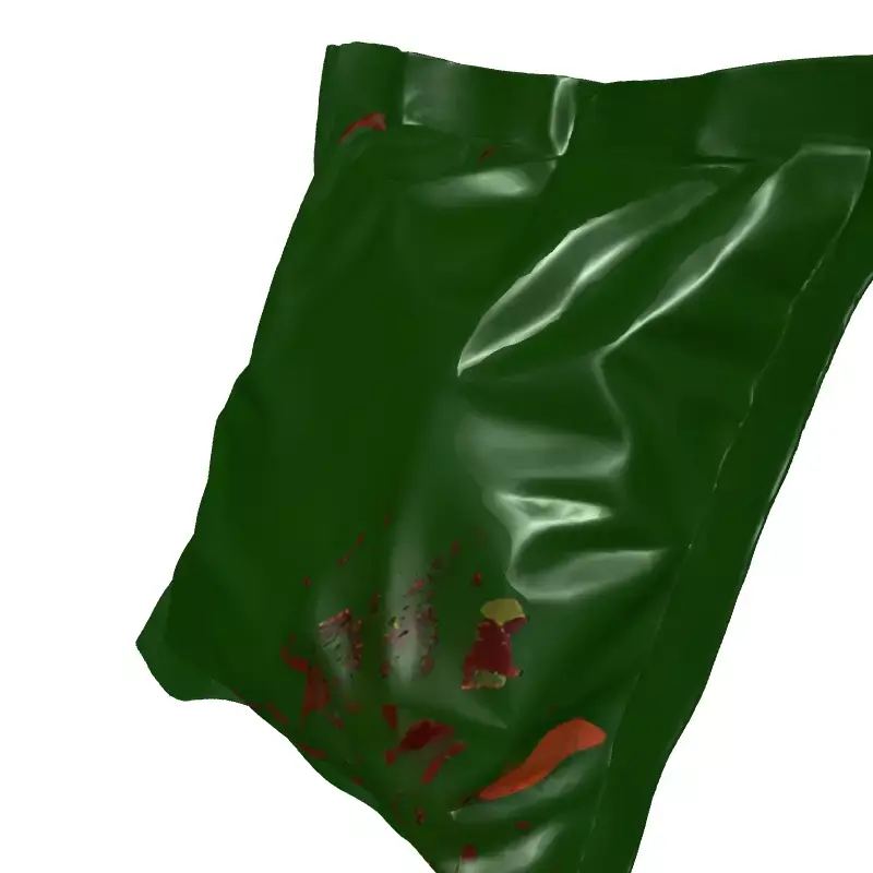 This is a highly detailed 3D model of a military-style sealed ration pouch, reminiscent of an MRE (Meal, Ready-to-Eat) package. It features a robust dark green finish with realistic wrinkles and creases, capturing the authentic appearance of a used or stored supply item. Subtle dirt and dust splatters are meticulously incorporated, adding a touch of realism and a sense of history to the model. This versatile asset is perfect for a wide range of applications, including immersive game development, particularly for survival, military simulation, or post-apocalyptic scenarios. It also serves as an excellent prop for architectural visualization, enhancing realism in abandoned structures, bunkers, or utility spaces. Furthermore, its optimized geometry makes it suitable for augmented reality (AR) and virtual reality (VR) environments, offering seamless integration and compelling visuals. Digital artists can leverage this model to populate their scenes with authentic details, while animators can use it as a robust foreground or background element. The model is provided in widely supported formats such as GLB, OBJ, FBX, and USD, ensuring compatibility across various 3D software and game engines. It is optimized for real-time applications with clean topology and efficient UV unwrapping. High-quality PBR (Physically Based Rendering) textures are included, providing realistic surface properties like albedo, roughness, and normal maps, ensuring photorealistic rendering in any lighting setup. This asset is ready to be dropped into your next project.