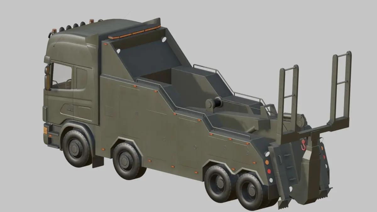 Moving parts like wheels, rotating orange lights, towing/vehicle lifting parts in the rear. Plus the cabin interior, transparent glass parts and steering wheel are separate objects. 36 objects in total.
