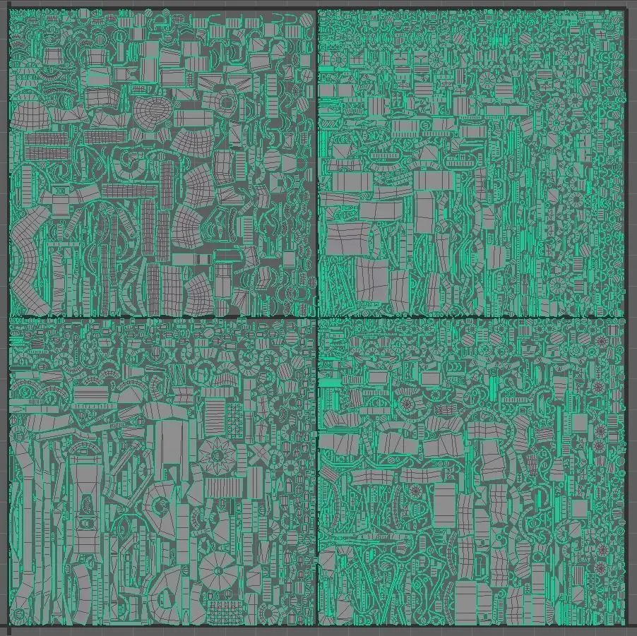 - Material count: 4 (each material corresponds to the assigned uv tiles)