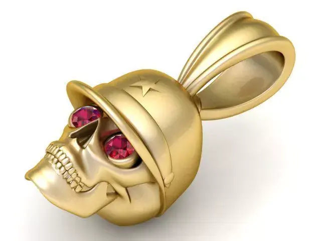 This Military Skull Pendant 3D Model is a high-detail, production-ready jewelry design featuring a realistic skull wearing an army helmet. The eyes include gemstone-style cavities, perfect for adding rubies, sapphires, CZ, or any round-cut stones for a bold and striking look.