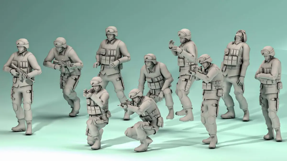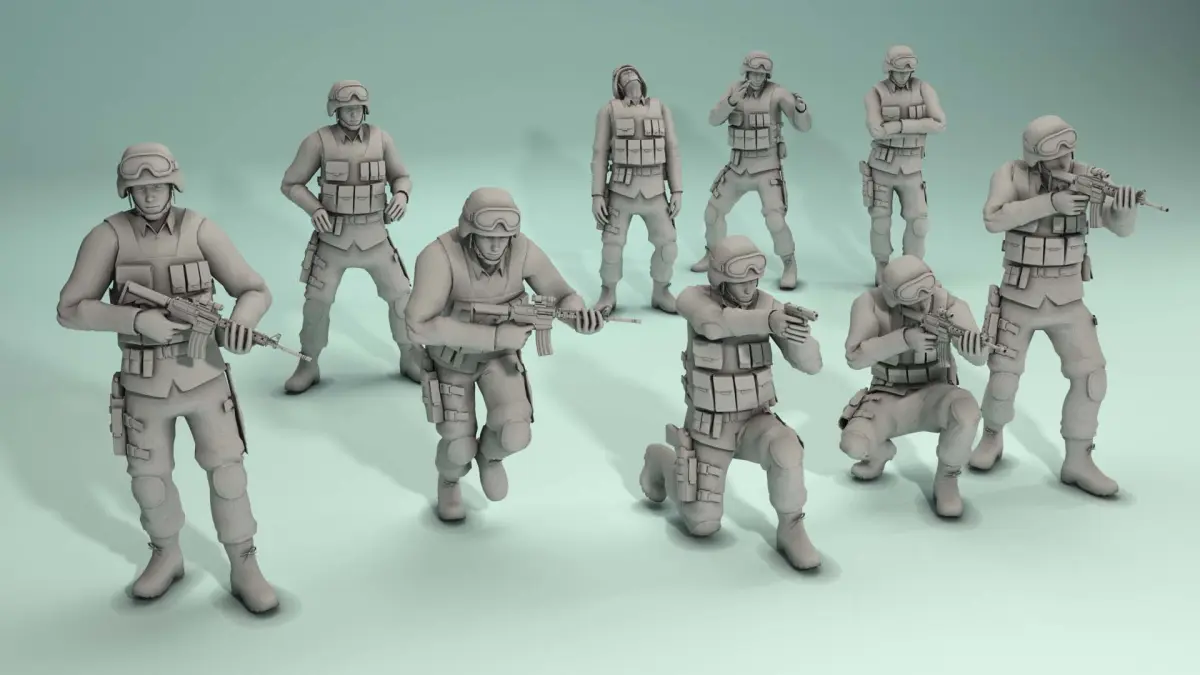This 3D asset pack features 10 stylized modern military soldiers in a variety of combat-ready and idle poses. Each character is a static mesh with clean topology, ideal for pre-visualization, background elements, concept scenes, or kitbashing in your environments