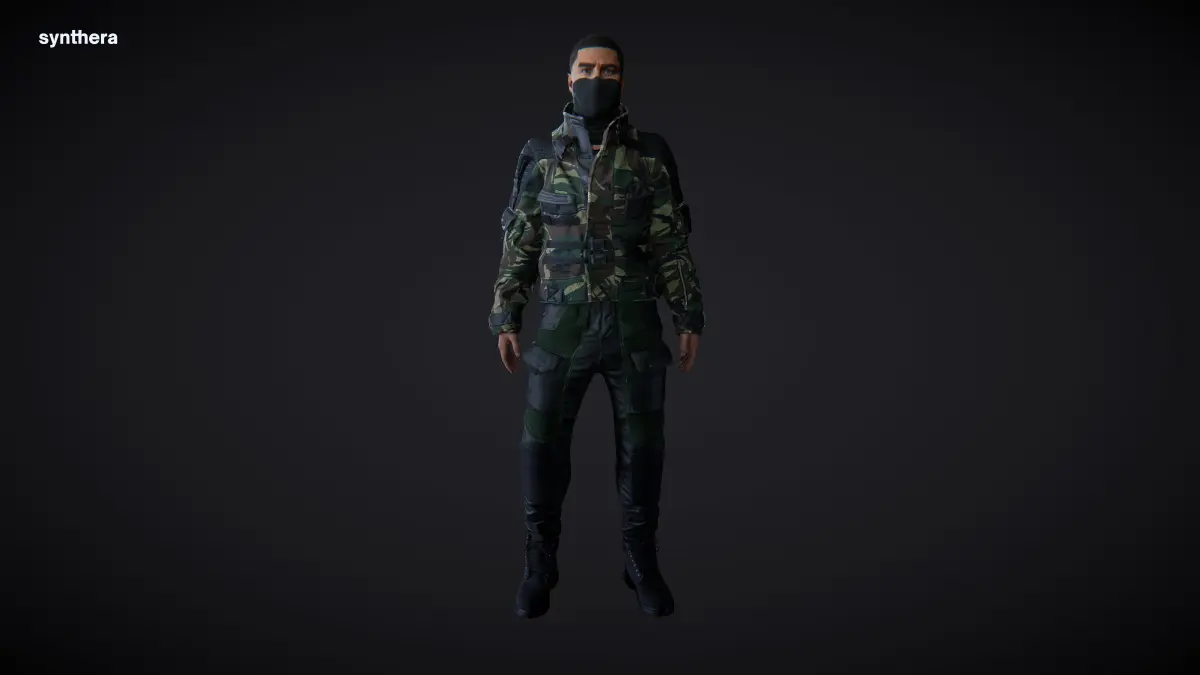 Stell, an adult male actor dressed in military wear to be used in Chameleon Simulator.