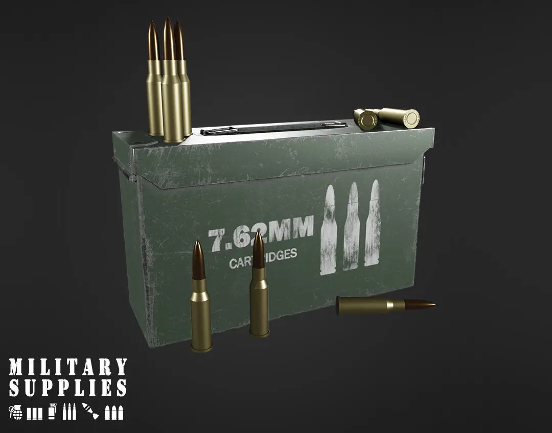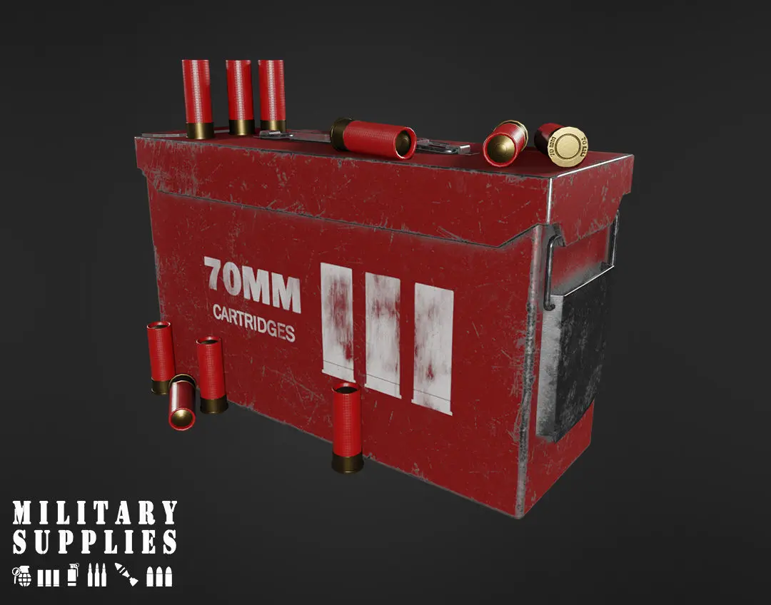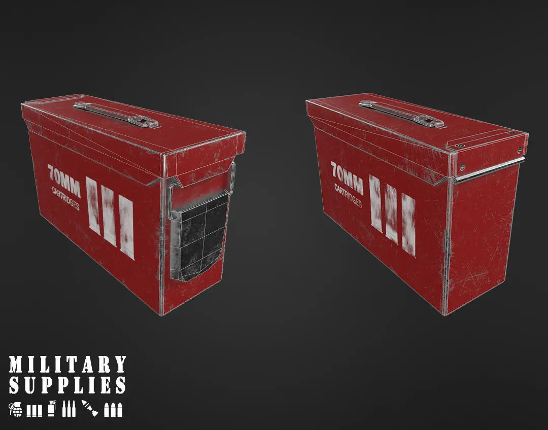 Military Supplies Pack - Cartridges box with 3 different textures, included 9mm, 7.62mm and 70mm bullets. Ready to use.