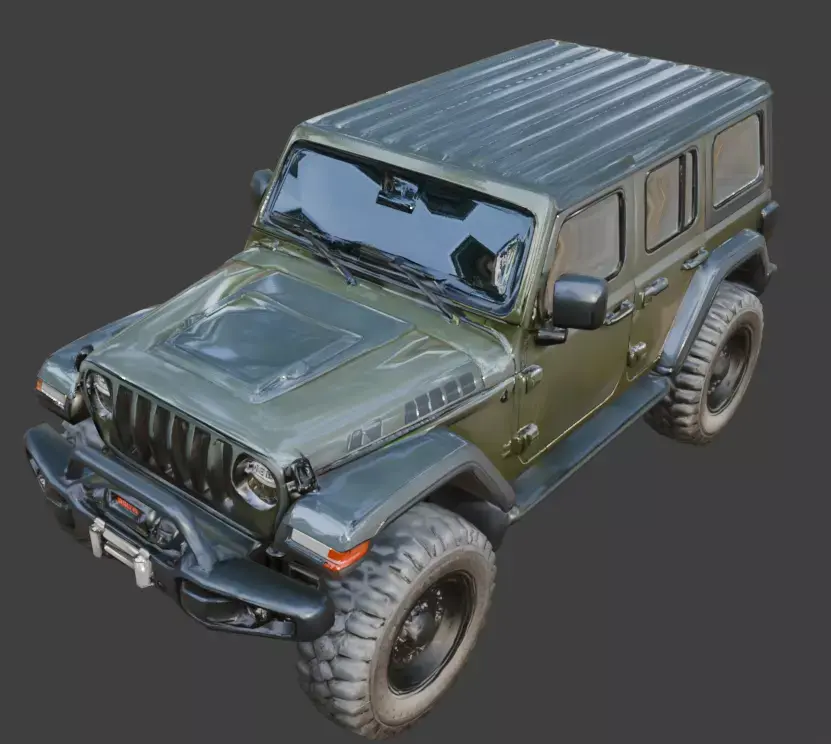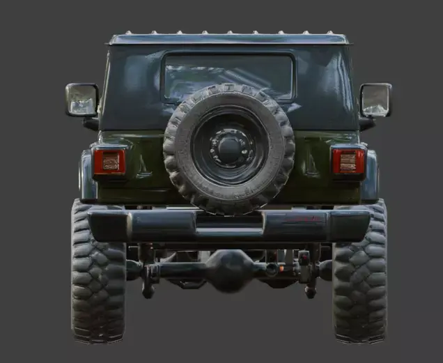 Tags3D model, military jeep, tactical vehicle, off-road, 4x4, olive drab, army truck, survival, rugged, winch, mud tires, SUV, automotive, heavy duty, lift kit, matte green, transportation, gaming asset, realistic, exterior