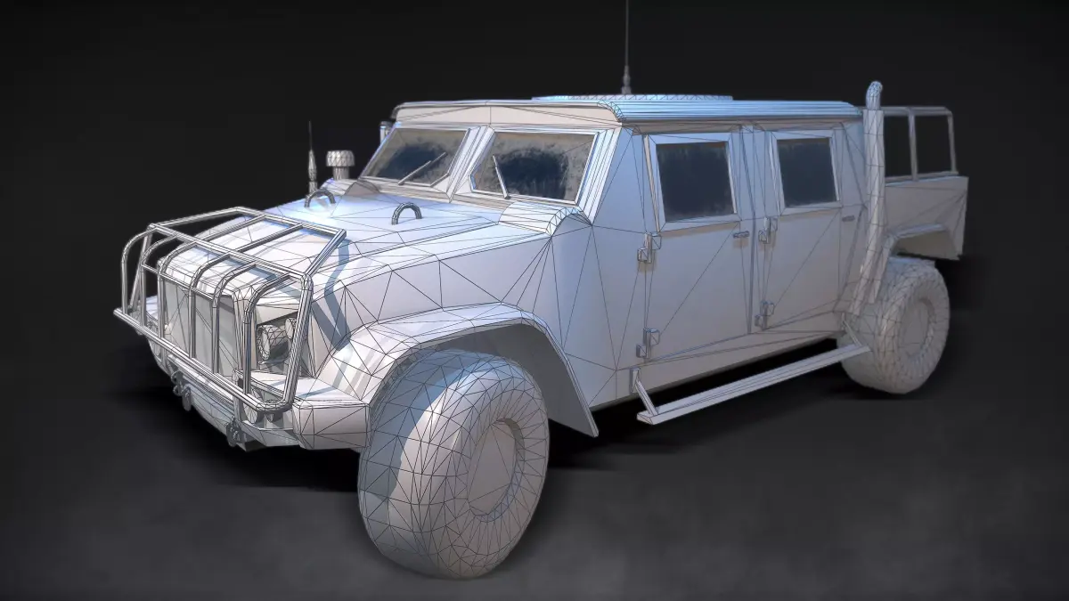 This asset is a generic fictional representation inspired by modern military light utility vehicles. It is NOT a 1:1 replica of any specific real-world manufacturer's model and contains unique artistic modifications. It is intended for use as a generic military asset to avoid trademark/licensing conflicts.