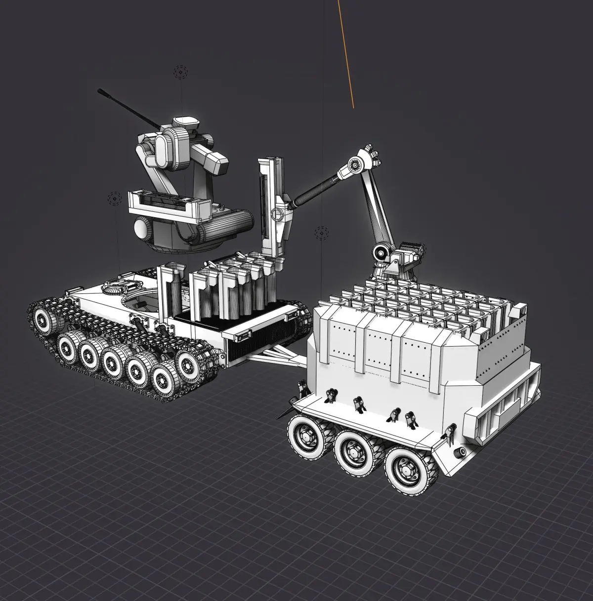 Military Tank/Vehicle Robot Loader Design, no textures, a little bit of animation, no frills really, not a bad $5 buy, make it your b*tch, do what ever you like with it, games, media, design, products, go for it. if you have any worries with it, just let me know, I'll do my best to fix it and make it work, thanks for taking a look, I really appretiate it, thanks.