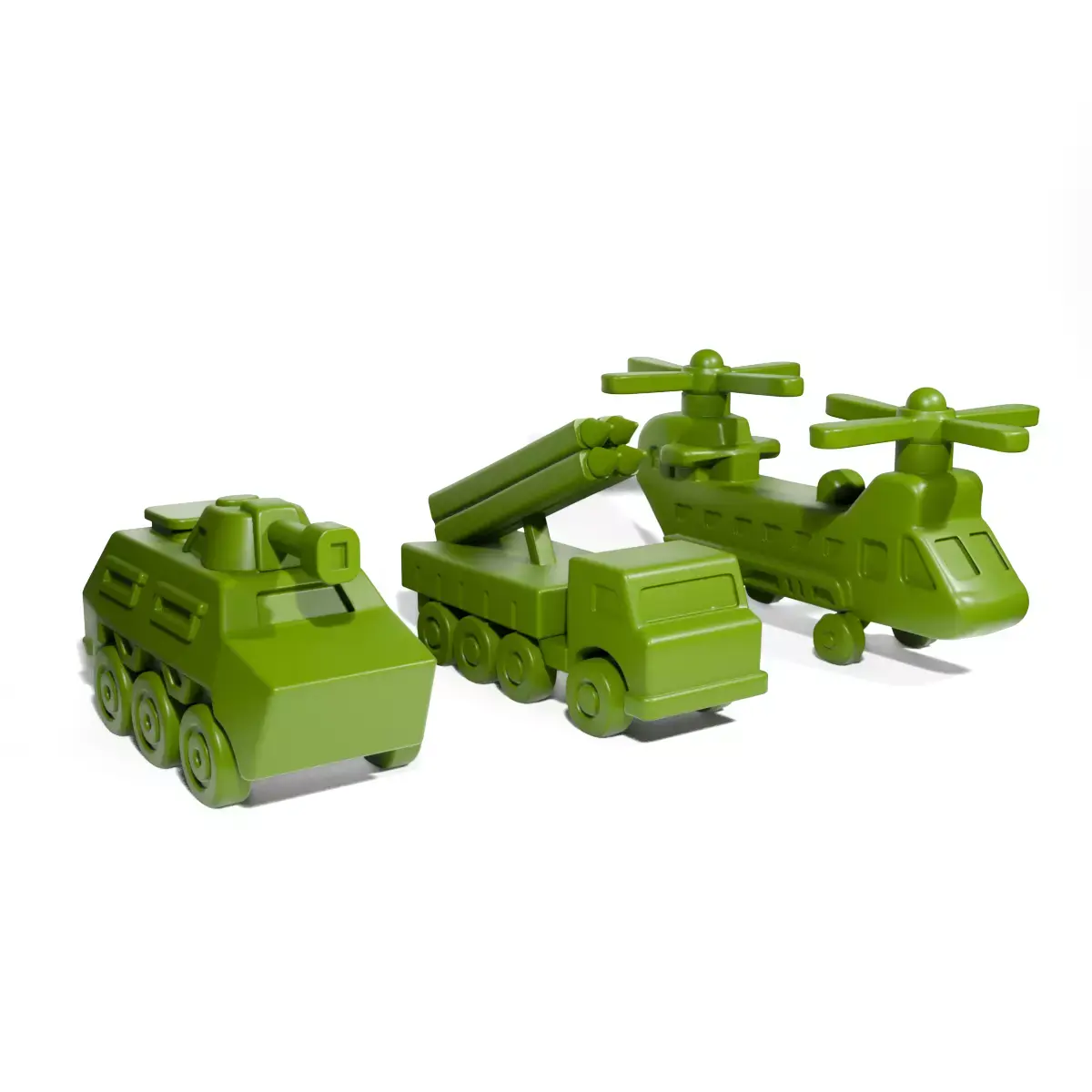 The military toys are designed with simplicity and durability in mind, making them suitable for children to handle during playtime.