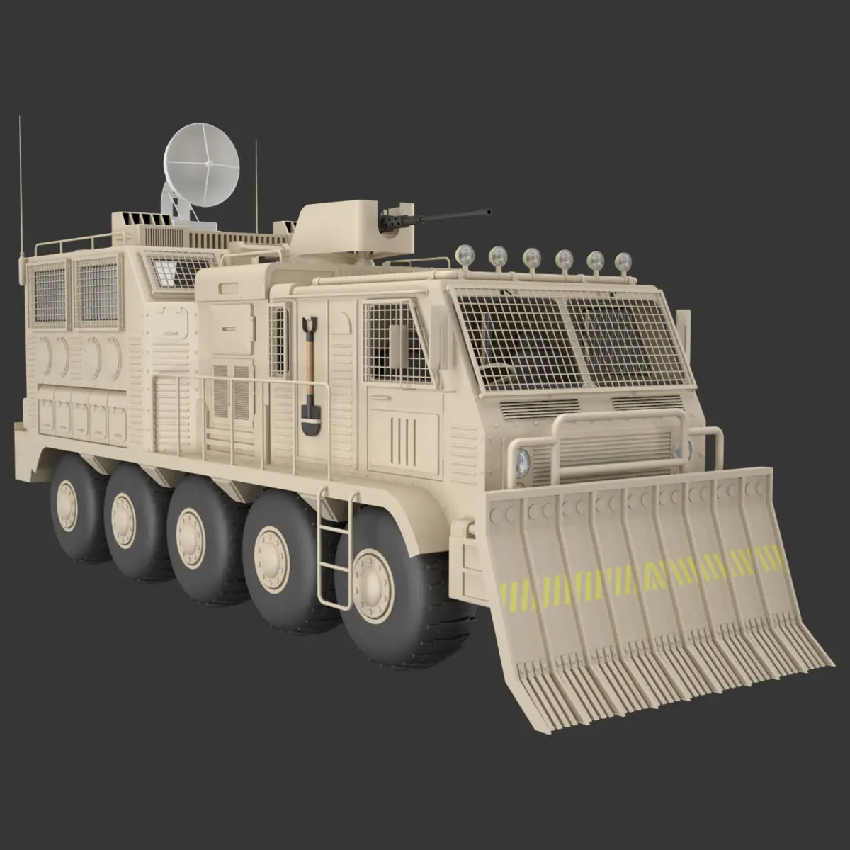 GEOMETRY AND OBJECTS INFORMATION:-Detailed 3D model of a Military Truck Concept 2.Real-world scale in feet/inch.Same layer objects attached for easy selection and objects are logically named.All objects in one group.