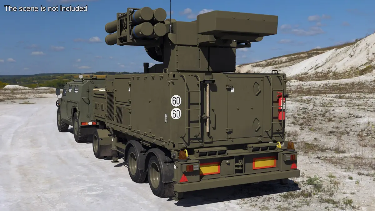 Military Truck with Missile System Crotale NG Rigged for Cinema 4D is a 3d model of mobile air defense system designed to provide protection against enemy airborne threats such as aircraft, helicopters, and drones.