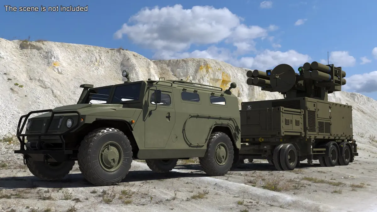 Military Truck with Missile System Crotale NG Rigged for Maya is a 3d model of mobile air defense system designed to provide protection against enemy airborne threats such as aircraft, helicopters, and drones.