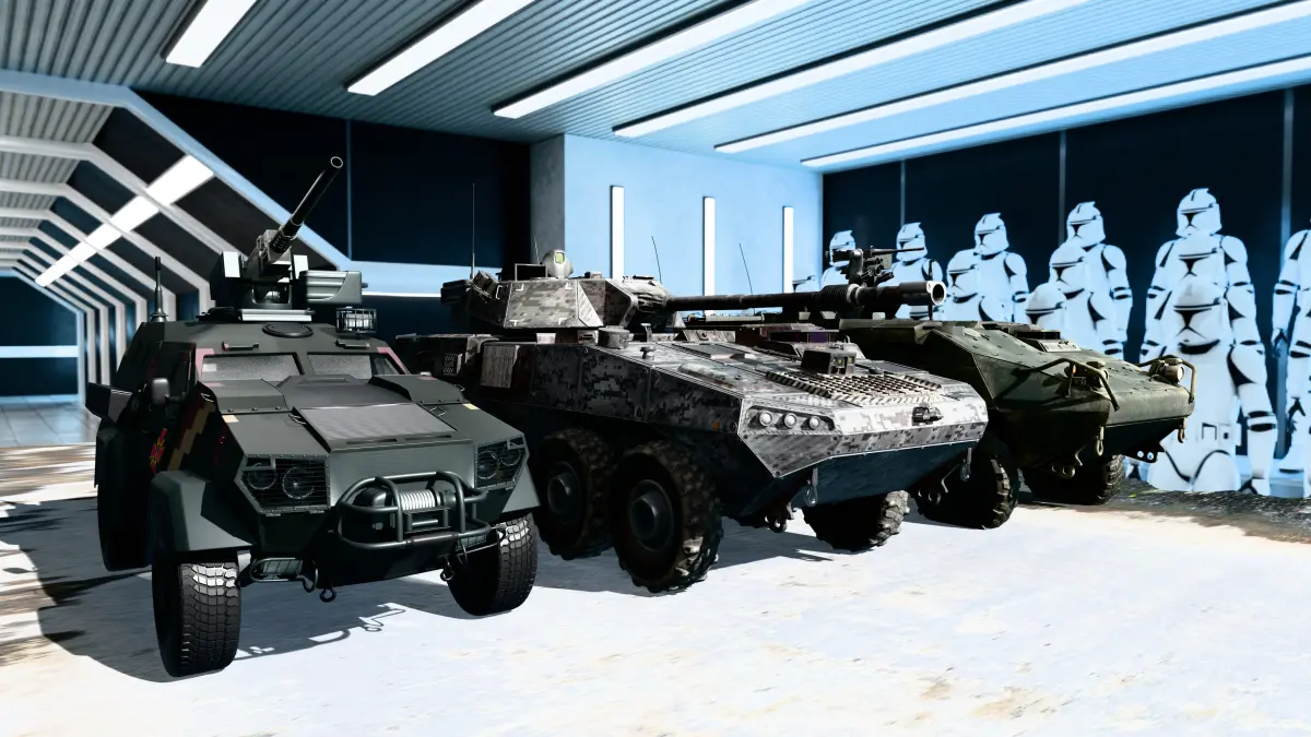 This premium-quality Military Vehicles Pack includes 3 fully detailed and textured models: one modern battle tank and two armored combat vehicles, all optimized for real-time applications.