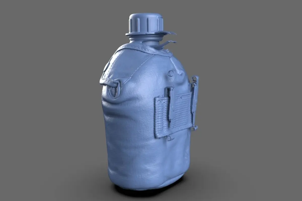 This model is a 3d scan of a Military Canteen. This model is suitable as a 3d reference for sculpting, modeling, and retopology, and is scanned to perfect form and scale