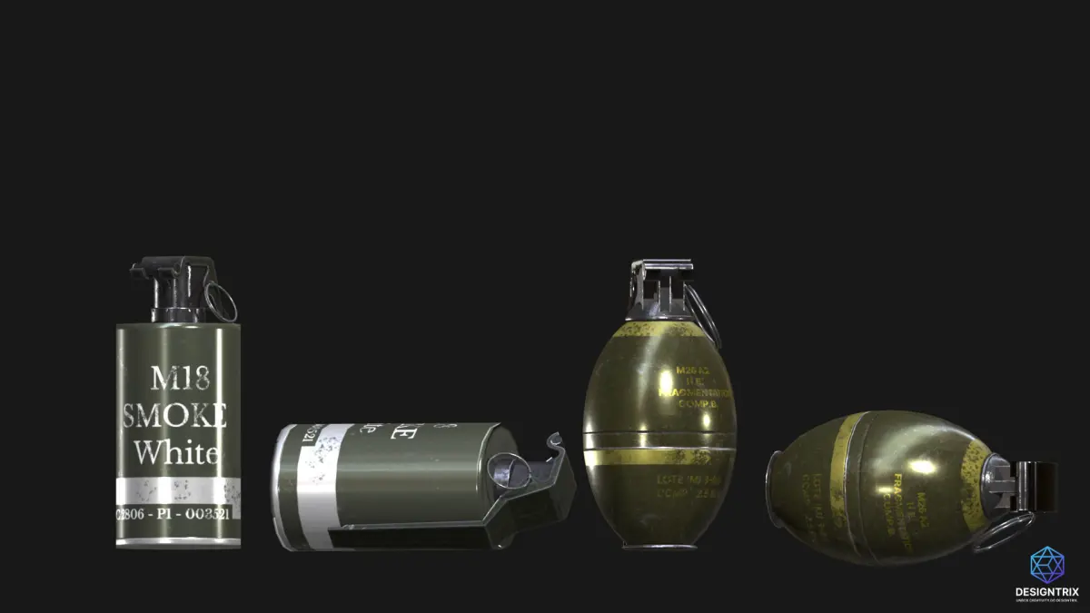 This 3D asset set presents a highly detailed and realistic collection of military weapons and tactical gear, ideal for use in video games, simulations, or cinematic scenes. The pack includes knive featuring rugged wooden handles and worn steel blades, reflecting realistic wear from battlefield use. A variety of grenades are also included, such as an smoke grenade and classic fragmentation grenades and AK-4 rifle.showcased in a dramatic crossed configuration, with authentic wooden grips and metallic finishes that exhibit subtle scratches and signs of use. The models are crafted with precision and utilize high-resolution PBR textures to enhance realism, making them perfect for first-person shooters, military-themed environments, or visual storytelling in war-based scenarios.