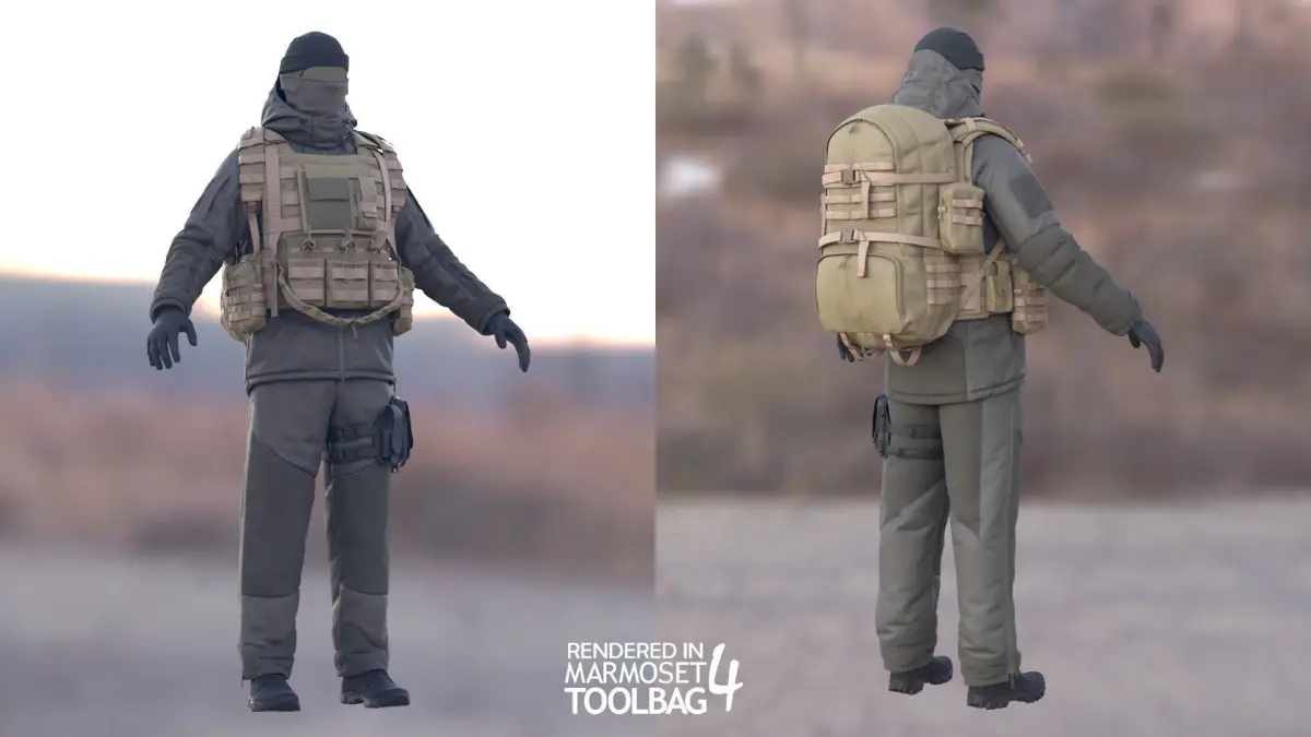 Unreal Engine and Blender version with a body (Rigged) - https://www.cgtrader.com/3d-models/character/clothing/man-winter-military-outfit-modular-rigged