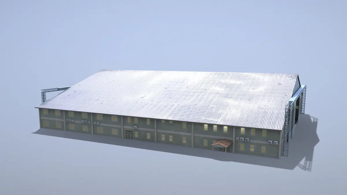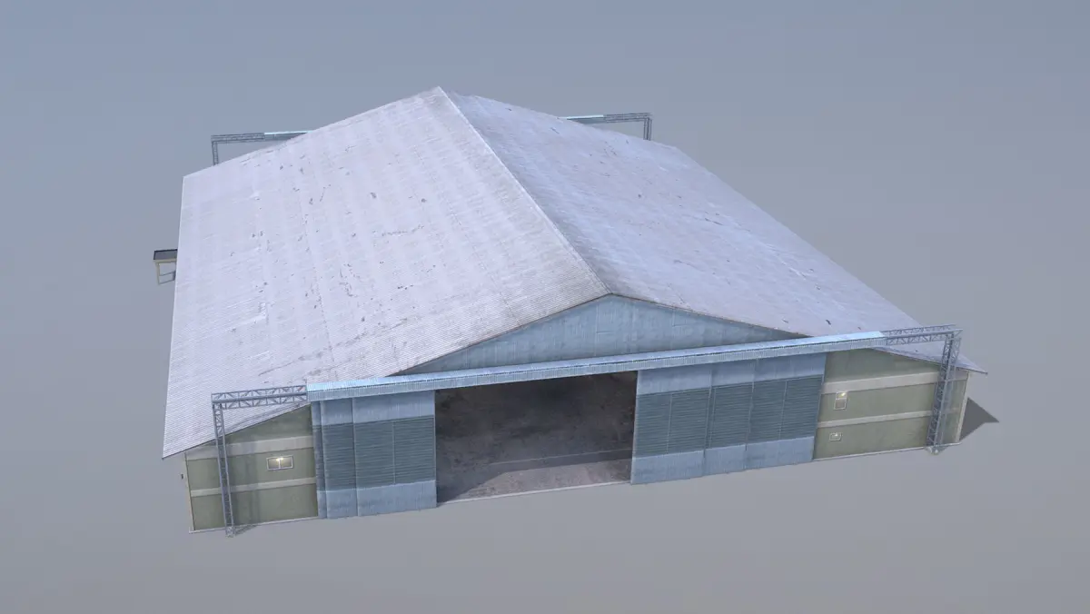 Low-poly 3D model Airport MilitaryBase Hangar with LODs