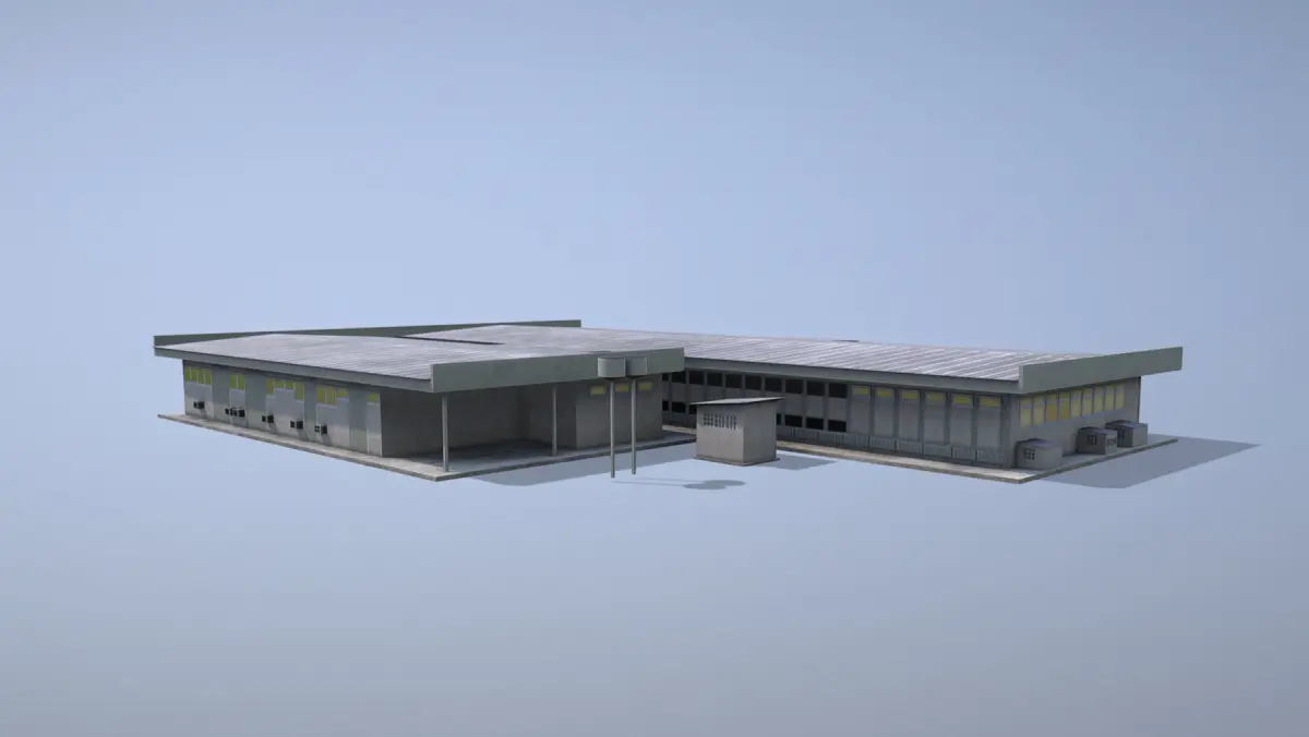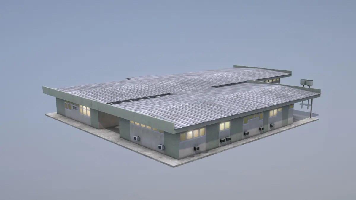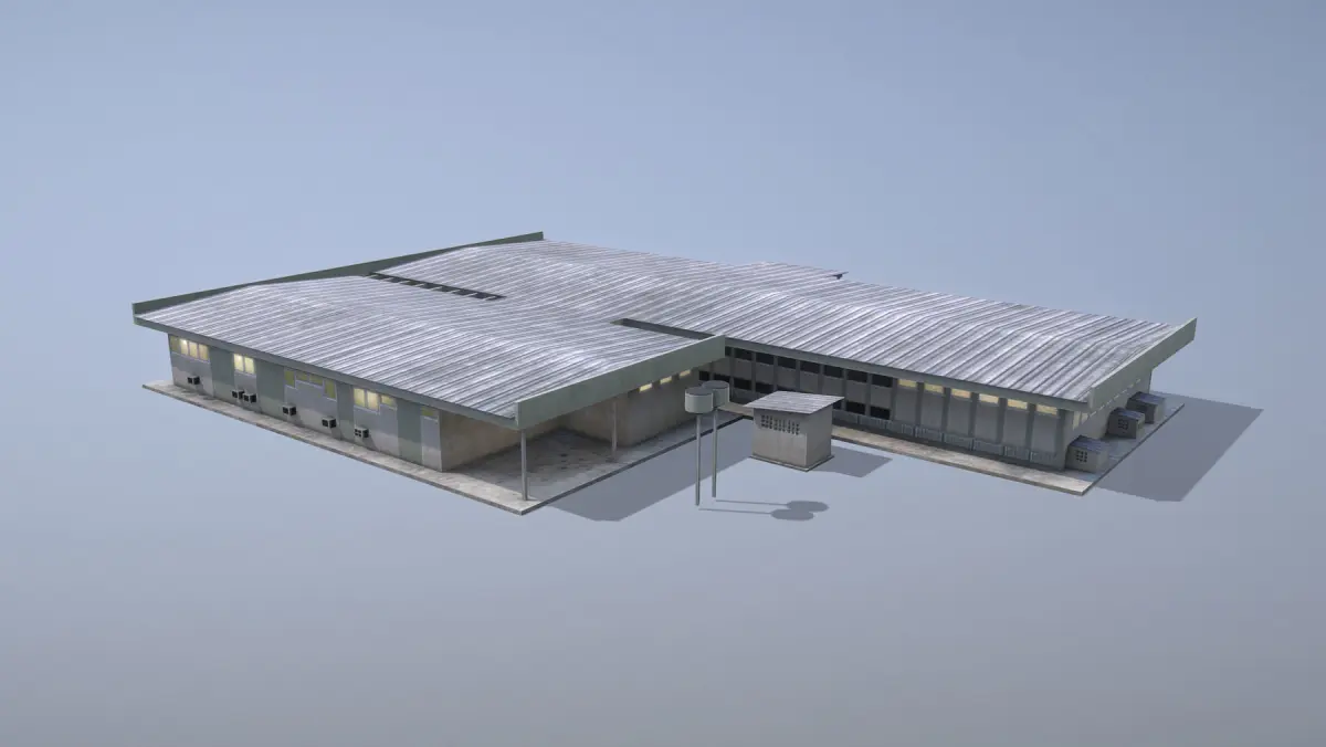 Low-poly 3D model Airport MilitaryBase Hospital with LODs