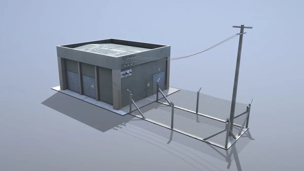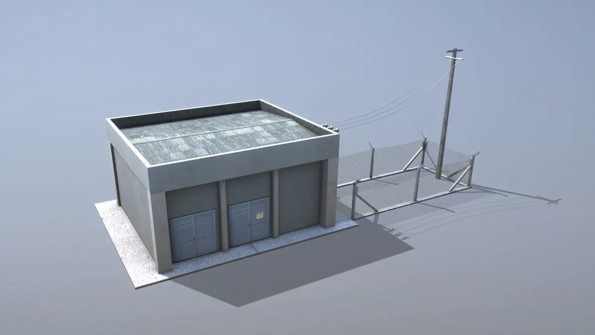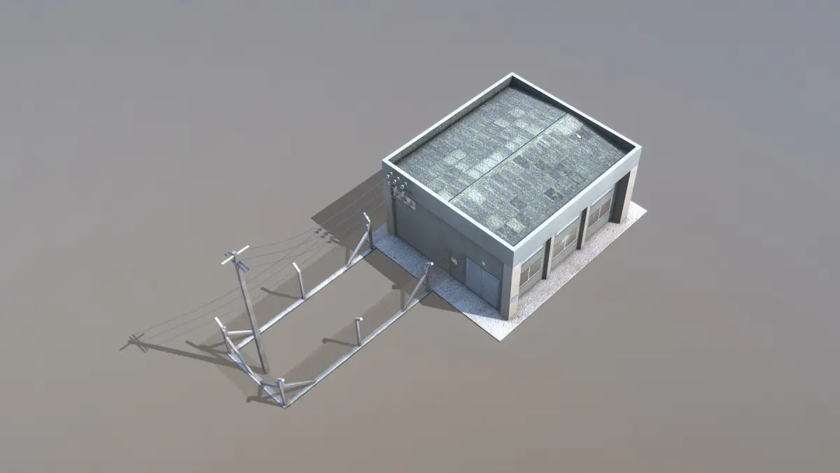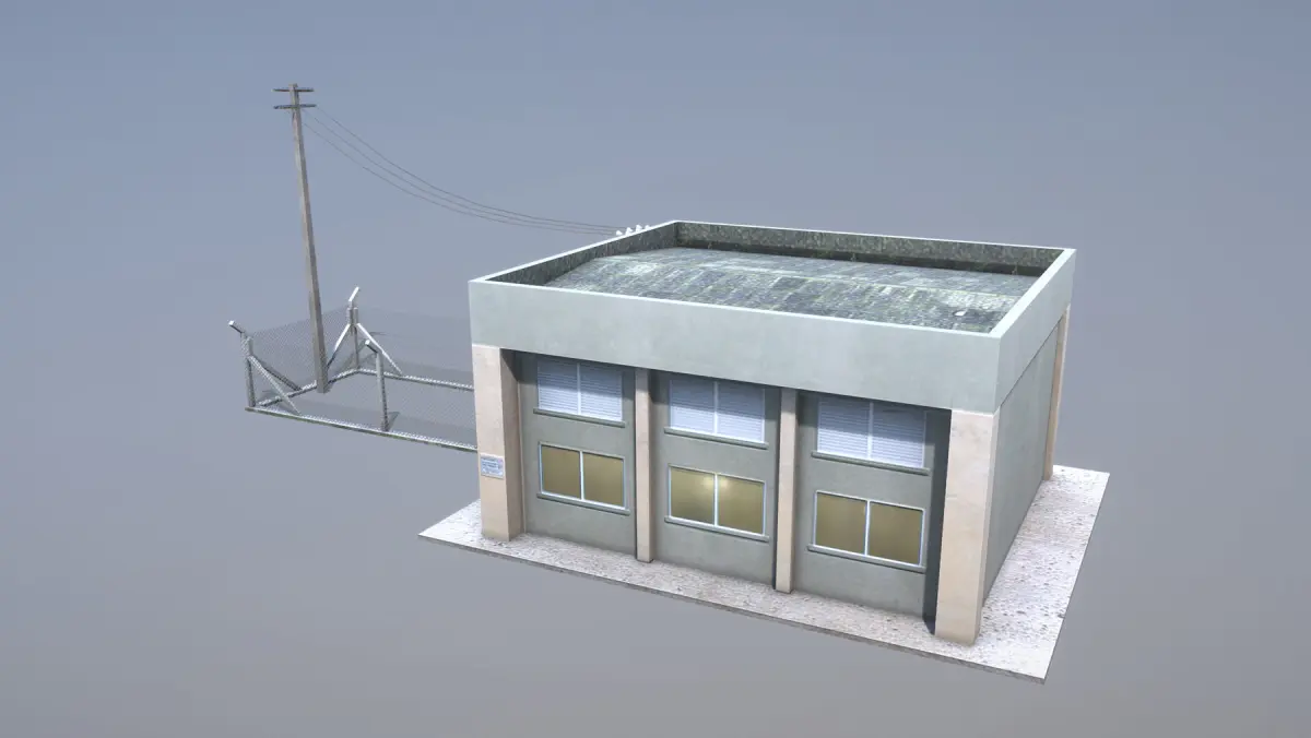 Low-poly 3D model Airport MilitaryBase PowerStation with LODs